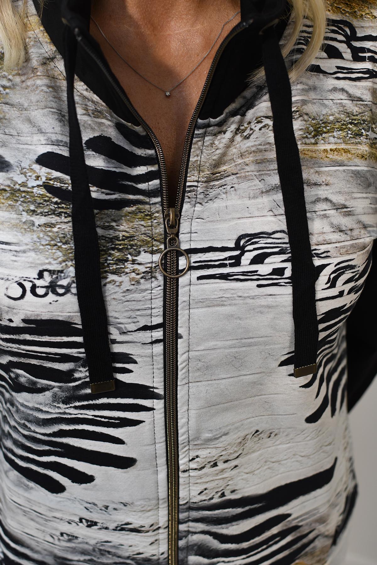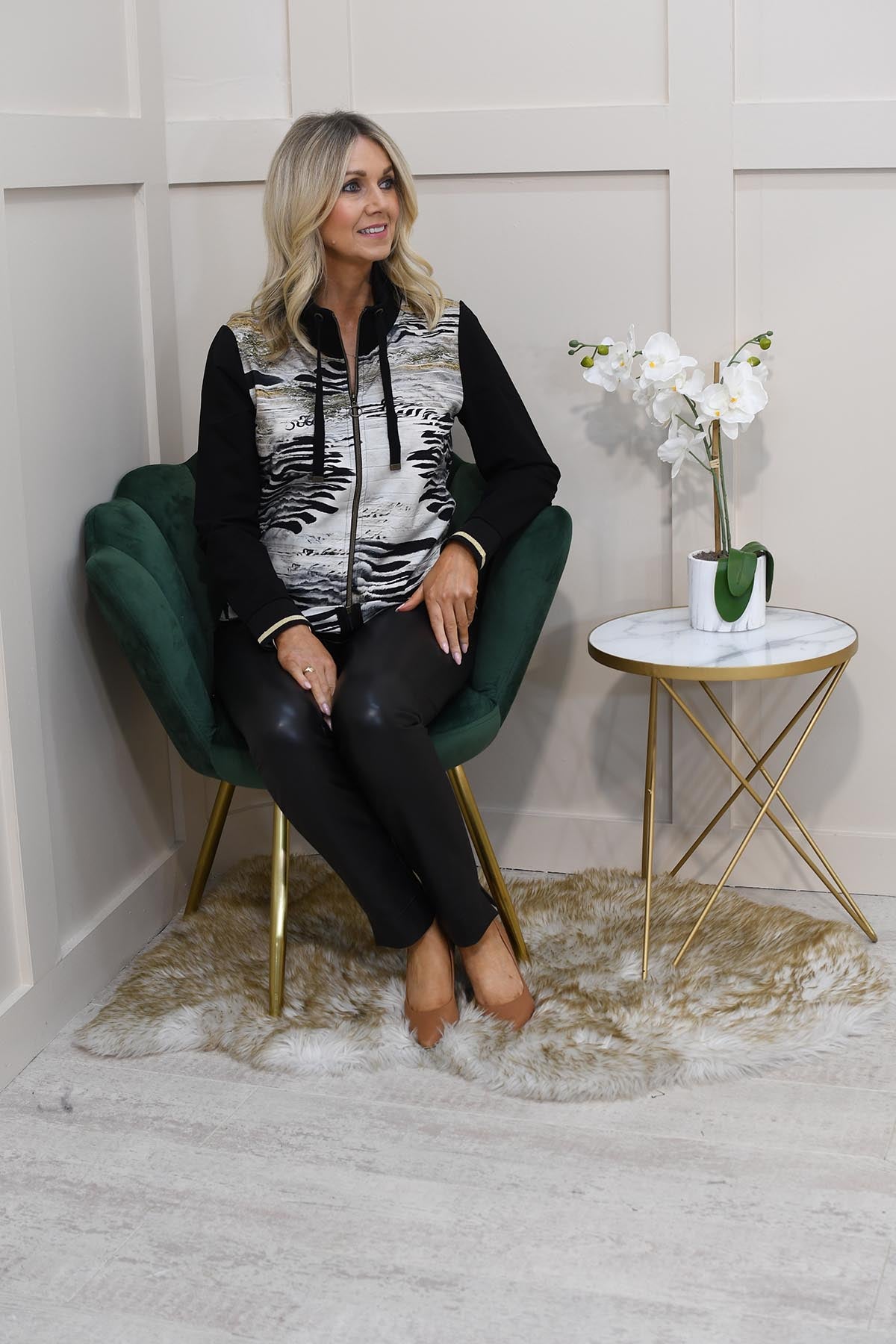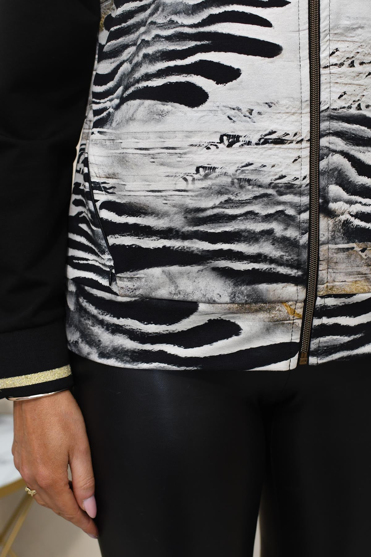 Dolcezza 'Unbalanced' Abstract Animal Print High Neck Jacket- Black & Beige 75688