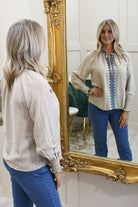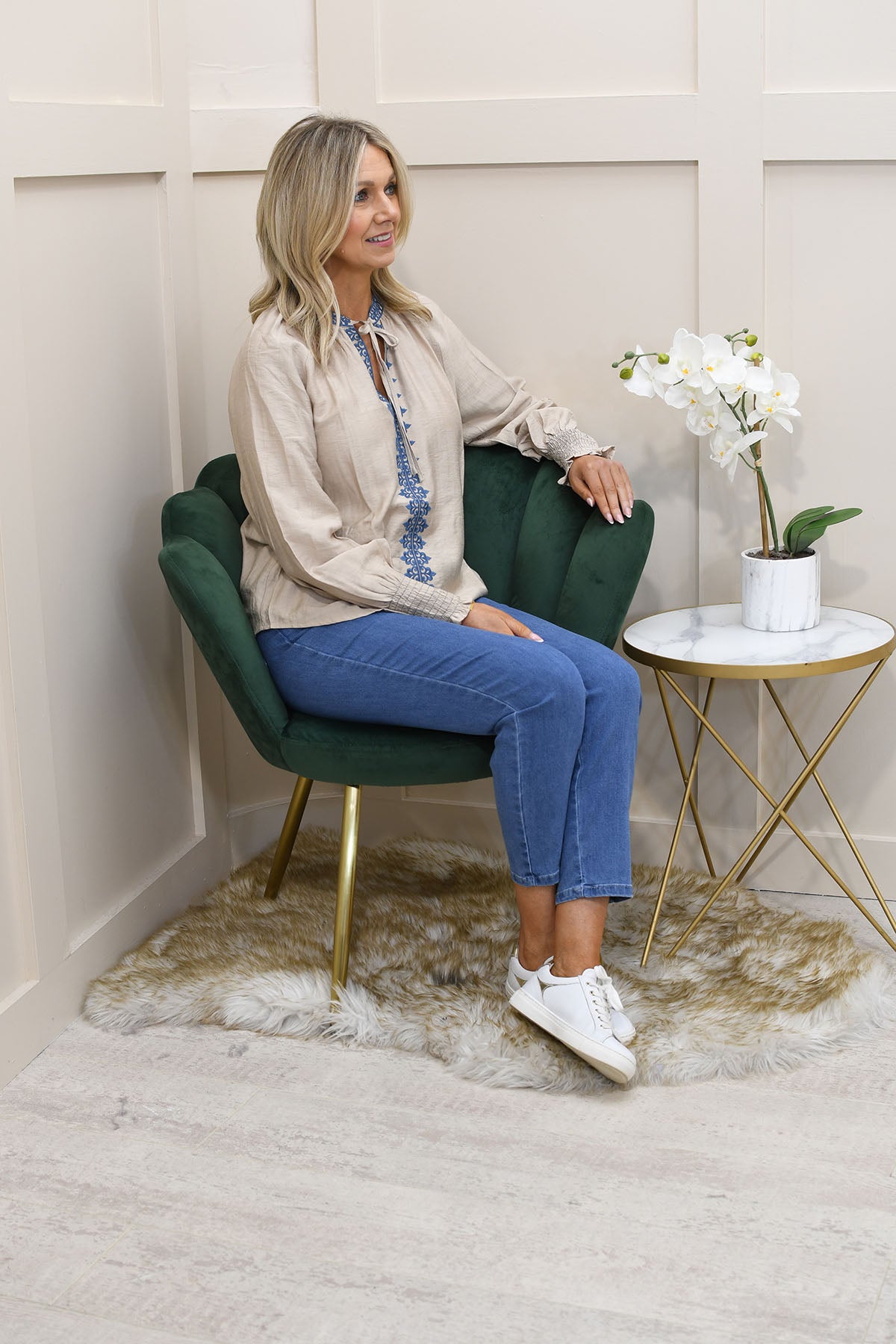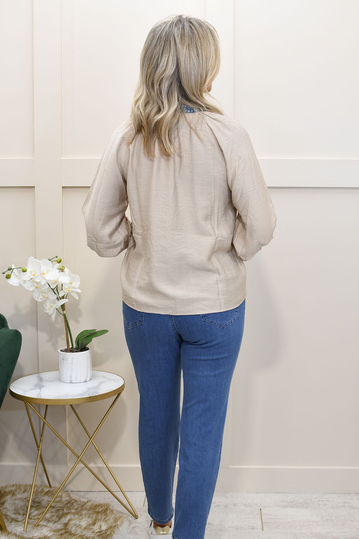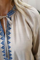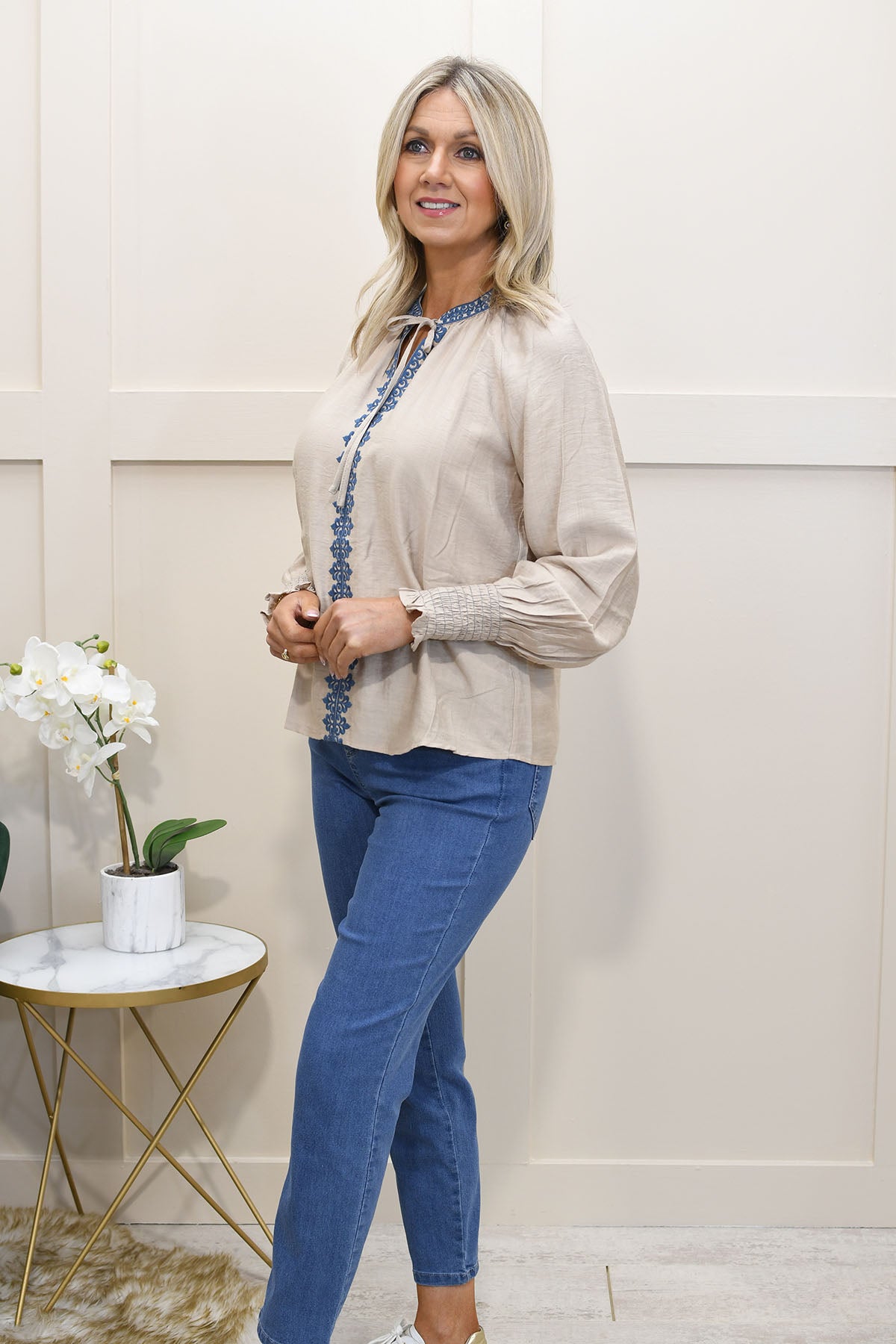 isay - Lykke Deco Blouse - Sand & Blue - 57837