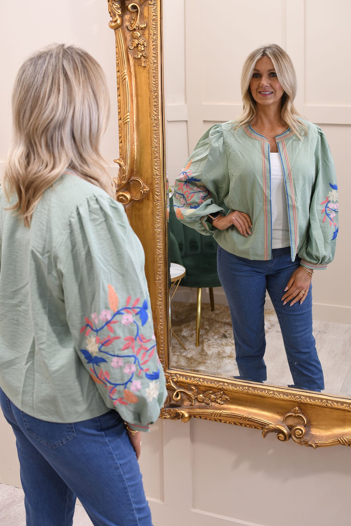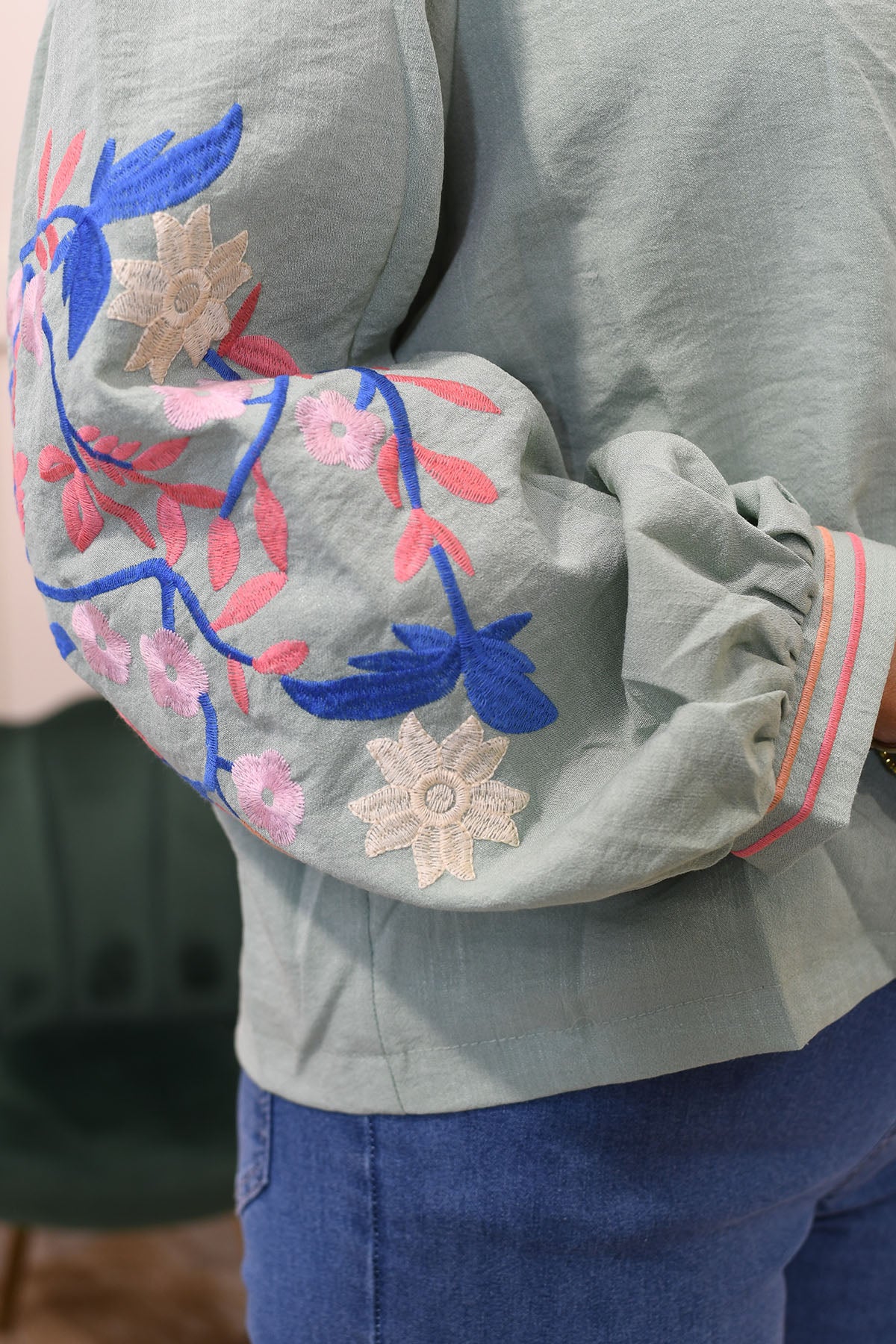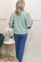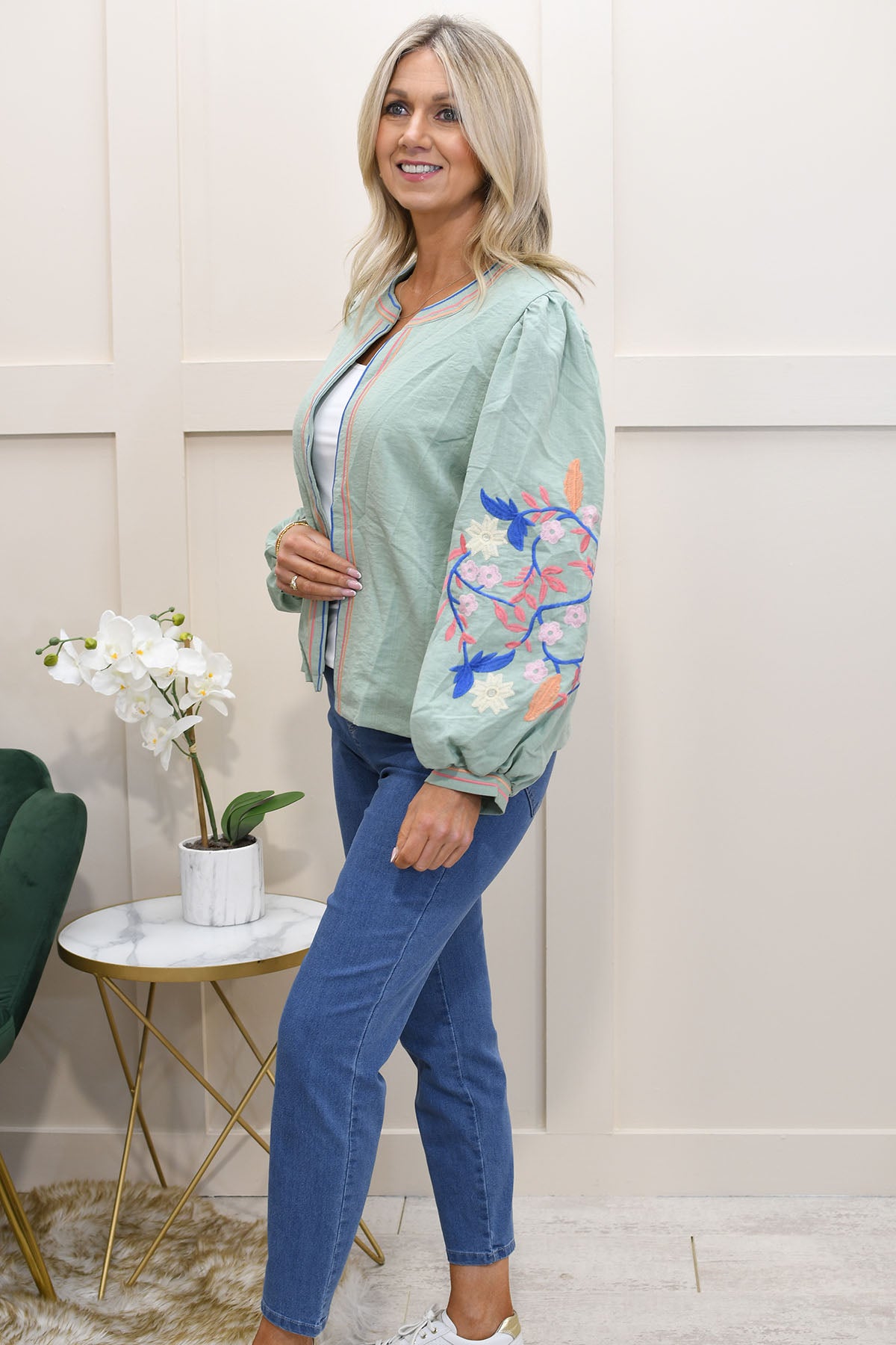 Kyla - Edge-to-Edge Floral Embroidered Jacket - Sage Green - T2028