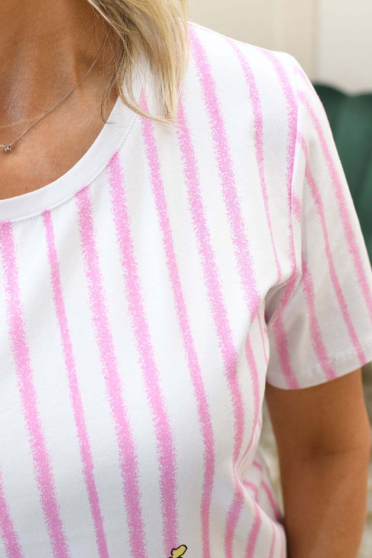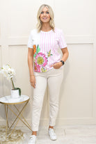 Leo & Ugo - Floral & Stripe Print Top - Pink & White - TED044