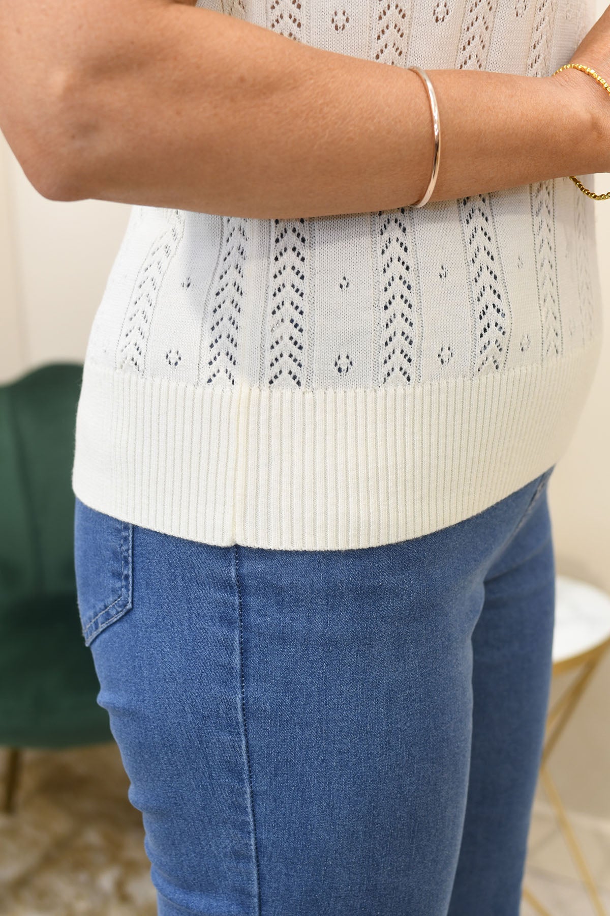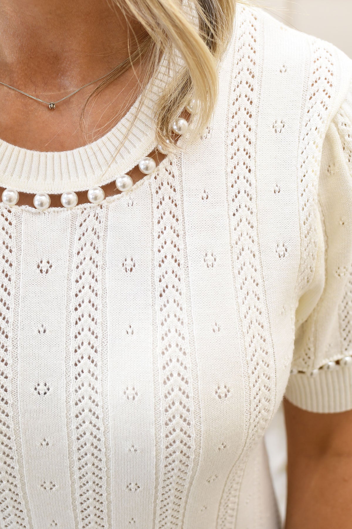 Leo & Ugo - Knit Top With Pearl Detail - Cream - AE106