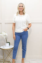 Add a touch of elegance to your knitwear collection with this beautiful cream knit top, designed to blend cosy comfort with refined detailing. Crafted from a premium blend of 54% polyester, 20% acrylic, 20% nylon, and 6% wool, it offers warmth, softness, and durability with a lightweight, comfortable feel. Delicate pearl detailing elevates the classic knit, adding a feminine, sophisticated finish that makes this piece feel extra special. Easy to style with tailored trousers, skirts, or denim, it transitions effortlessly from day to evening. Perfect for smart-casual occasions, lunches, or relaxed evenings, it delivers timeless style with a polished edge.