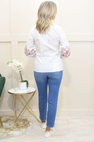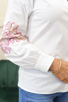 Add timeless femininity to your wardrobe with this white shirt, beautifully detailed with delicate floral embroidery. Crafted from a comfortable, breathable blend of 70% cotton, 27% nylon, and 3% elastane, it offers a soft feel with gentle stretch for a flattering, easy-to-wear fit. The classic shirt silhouette is elevated by intricate embroidered floral accents, adding texture and refined elegance to a versatile staple. Perfect for styling with tailored trousers, skirts, or denim, this shirt transitions effortlessly from day to evening. Ideal for work, lunches, or smart-casual occasions, it delivers polished style with subtle charm.