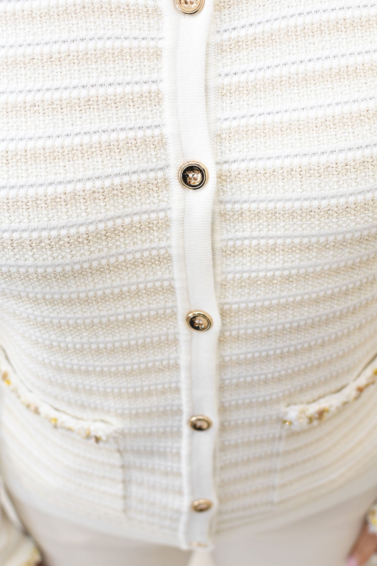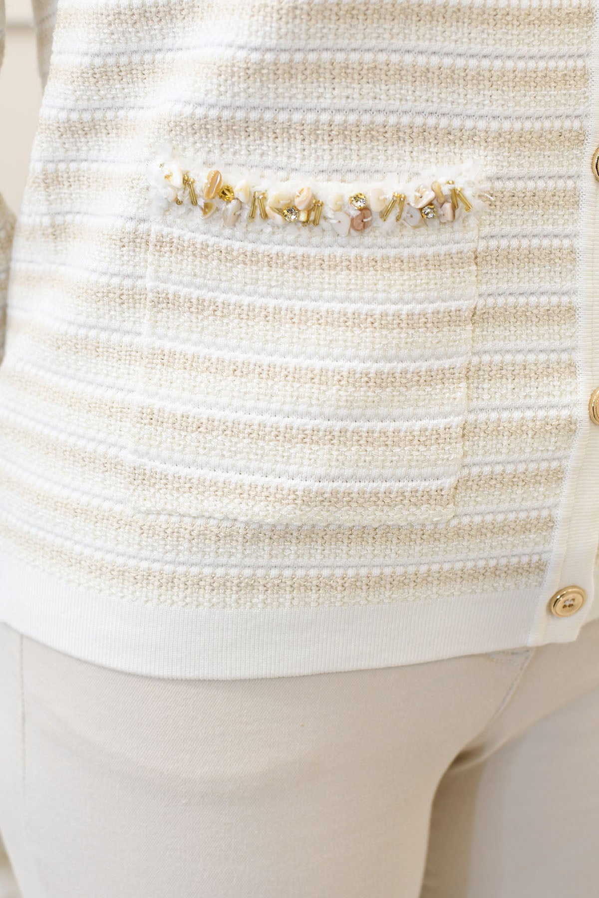 Leo & Ugo - Striped Cardigan With Beaded Detail - Beige & Cream - AE125