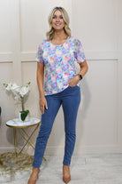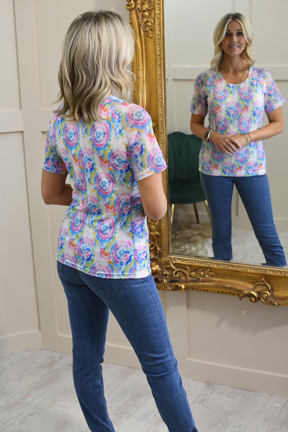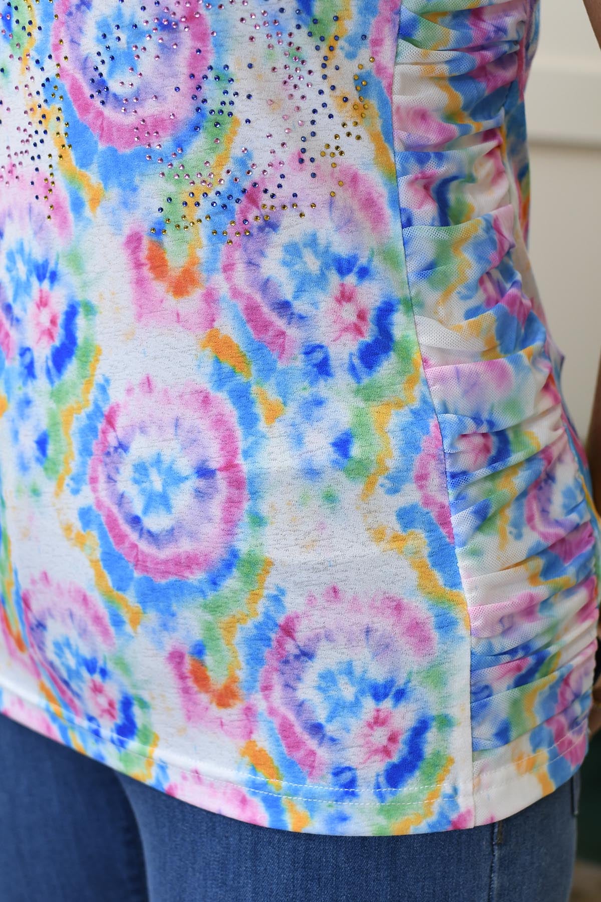 Libra Multicolour Tie-Dye Top With Ruched Sides & Diamante Detail -LT1905