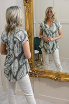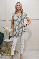 Marble Khaki & White Leaf Print Blouse- 7935 123