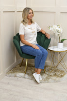 Add a touch of inspiration to your everyday wardrobe with this champagne beige Spring Quote top from the Viva Italia collection. Crafted from a luxurious blend of 50% cotton and 50% modal, it offers an exceptionally soft, breathable feel with a smooth, lightweight drape for all-day comfort. The uplifting quote design brings a modern, positive statement, while the neutral champagne beige tone ensures versatile styling. Effortlessly chic, this top pairs beautifully with jeans, trousers, or skirts for relaxed yet polished looks.