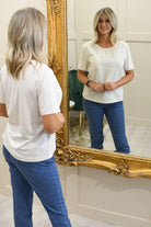 Add effortless sophistication to your everyday wardrobe with this champagne beige top with pocket detail from the Viva Italia collection. Crafted from a soft, stretch-enhanced blend of 92% viscose and 8% elastane, it offers a smooth, breathable feel with flexible comfort for all-day wear. The subtle pocket detail adds a modern, relaxed touch while maintaining a clean and polished silhouette. Lightweight and versatile, this top pairs beautifully with jeans, trousers, or skirts for casual yet refined styling.