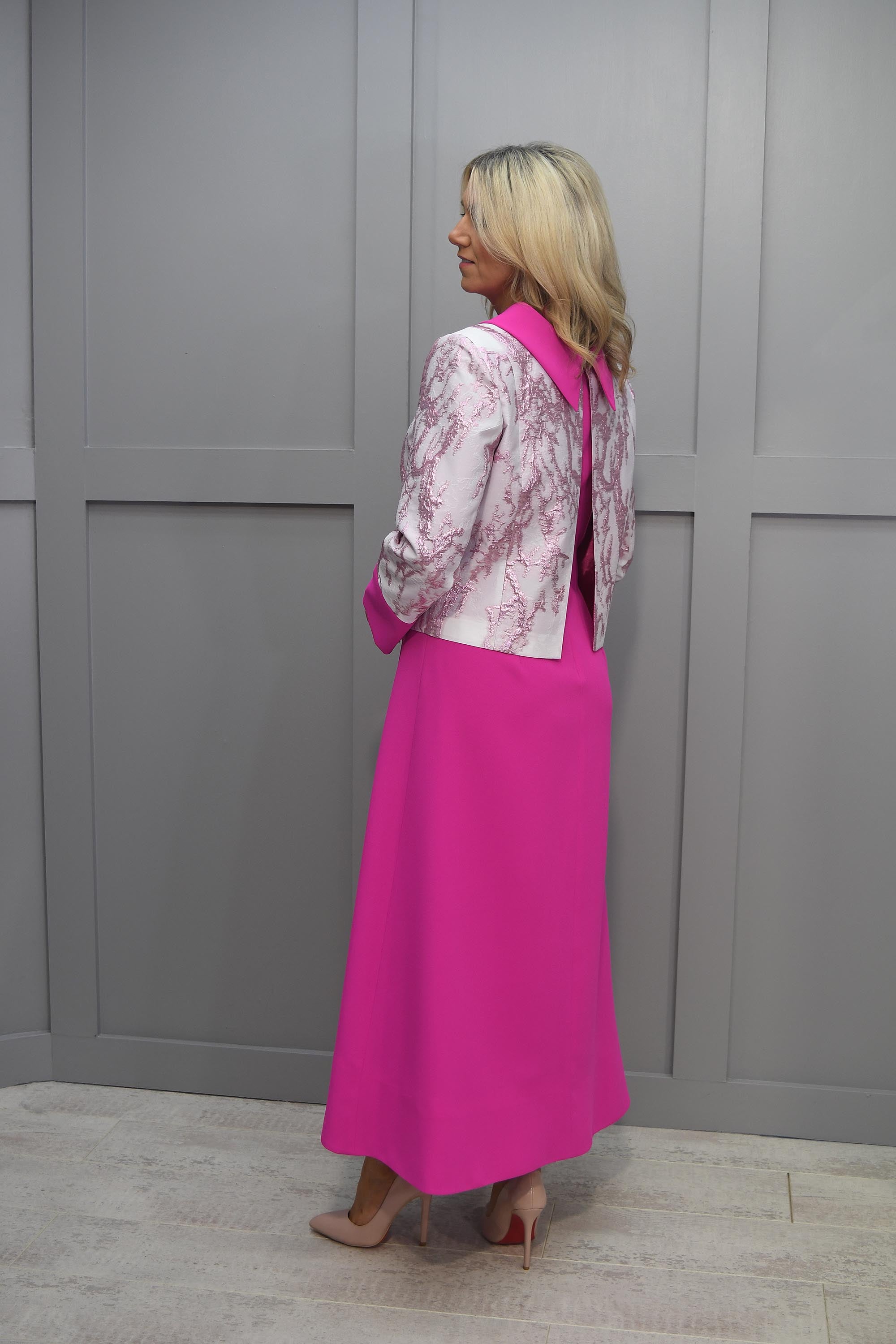 The hot pink hue of the dress commands attention, radiating energy and confidence. The vibrant colour not only captivates the eye but also embodies a spirit of unabashed glamour, making it the perfect choice for those who want to make a statement at any event.