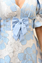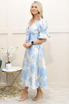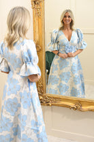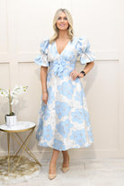 The 8th Sign - Metallic Puff Sleeve Midi Dress - Pale Blue - Callie