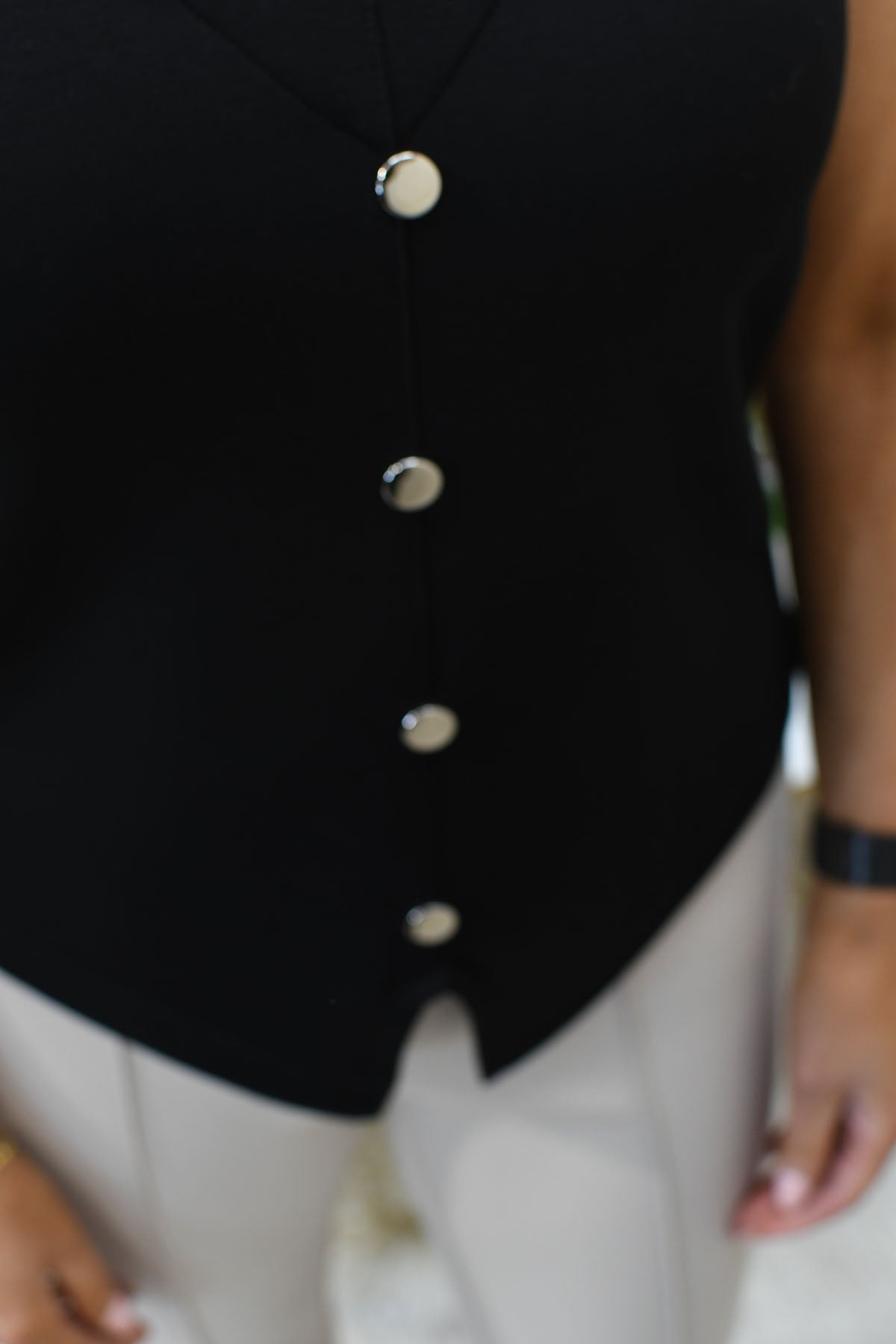 Tricotto - Waistcoat With Faux Buttons - Black - 56364