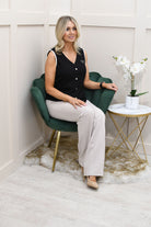 Refine your wardrobe with this black waistcoat crafted from a premium blend of 48% viscose, 46% polyester, and 6% elastane, offering a smooth feel with comfortable stretch and structure. Designed with a flattering, tailored silhouette, it features faux button detailing that adds a polished, contemporary touch. The versatile design makes it perfect for layering over blouses or pairing with coordinating pieces for a sleek, put-together look. Lightweight yet structured, it transitions effortlessly from day to evening. Ideal for those searching for tailored waistcoats, smart layering pieces, or modern wardrobe staples with comfort and sophistication.