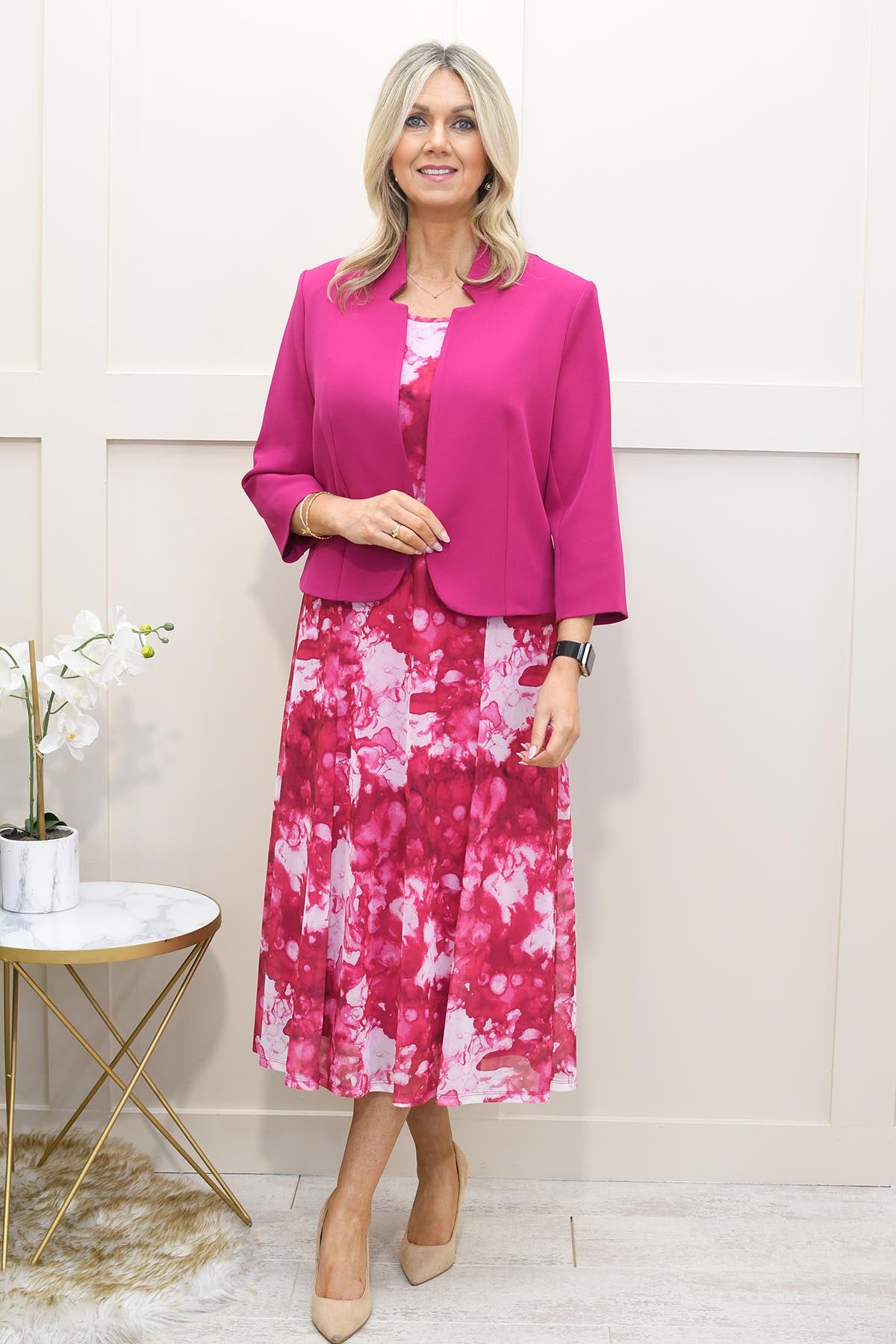 Via Veneto - Watercolour Print Dress With Bolero - Magenta - V413/416 Mamy