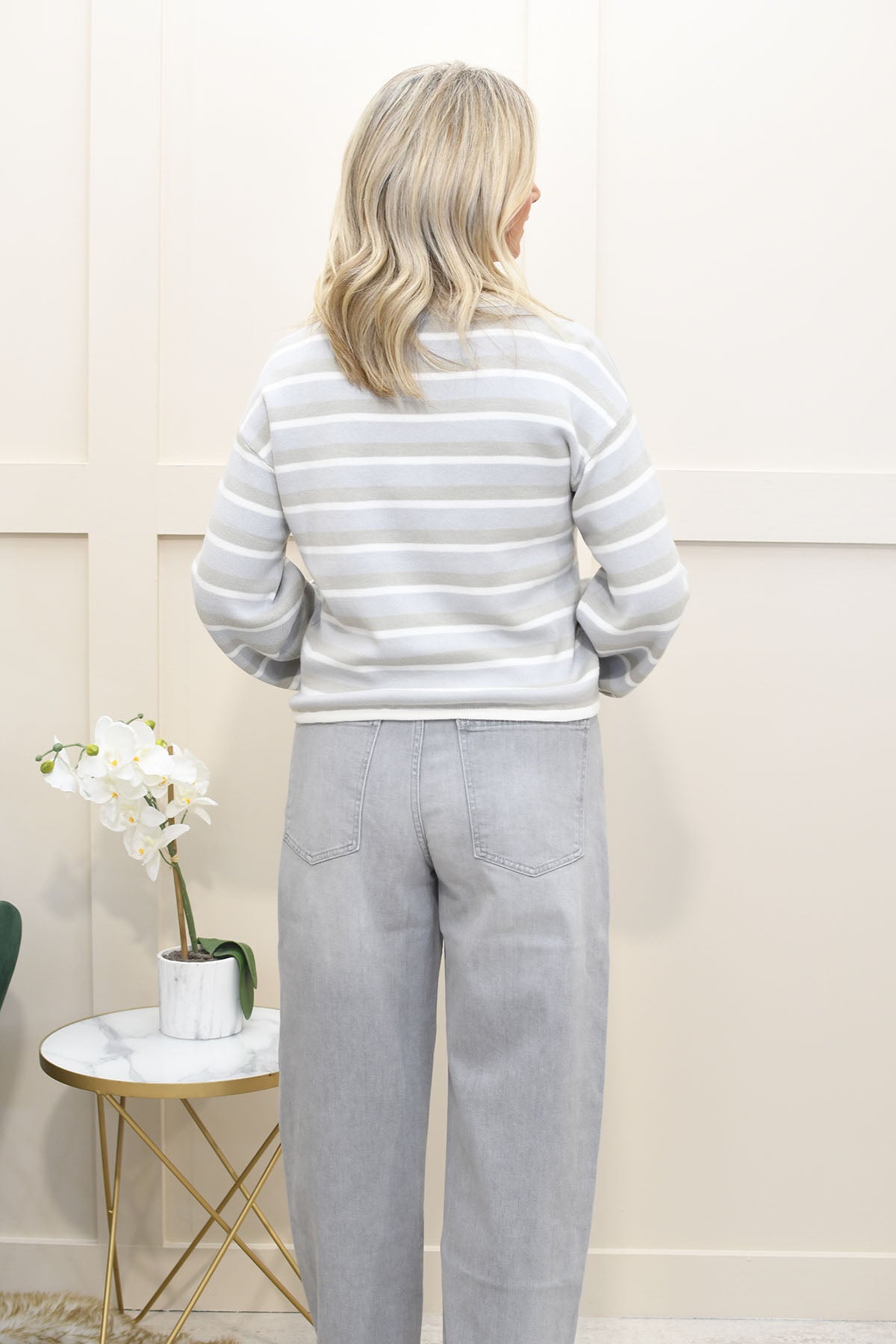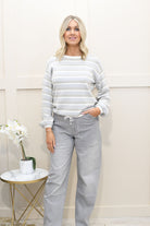 Refresh your casual knitwear with this blue grey striped sweater, designed to combine everyday comfort with contemporary styling. Crafted from 100% cotton, it offers a soft, breathable feel that’s ideal for all-day wear and easy layering. The classic stripe pattern adds timeless appeal, while the adjustable drawstring hem allows you to customise the fit for a relaxed or more defined silhouette. Lightweight and versatile, this sweater pairs effortlessly with jeans, trousers, or skirts. Perfect for everyday wear, travel, or relaxed weekends, it delivers laid-back style with a modern edge.