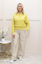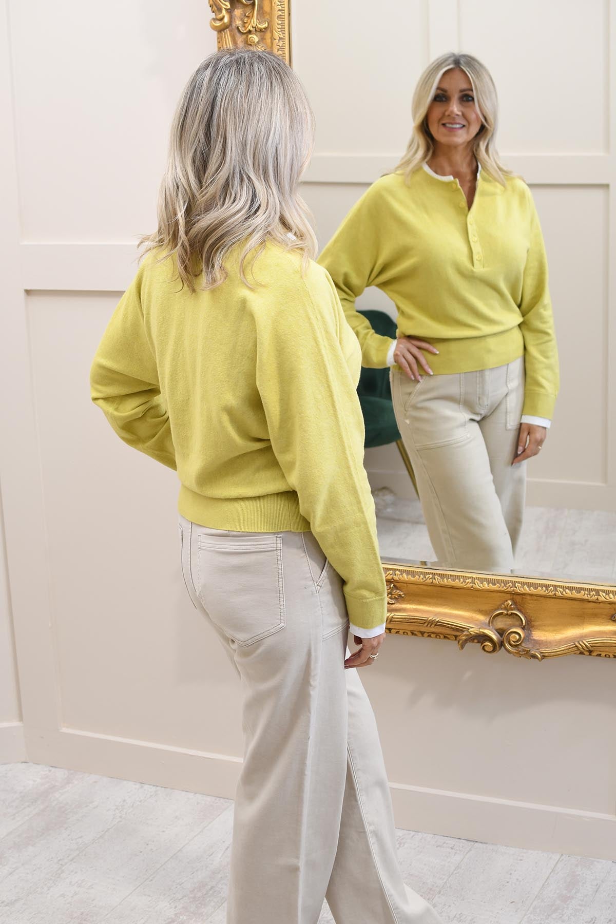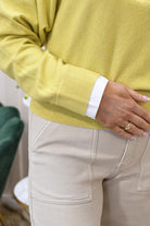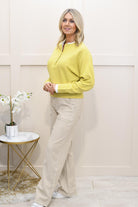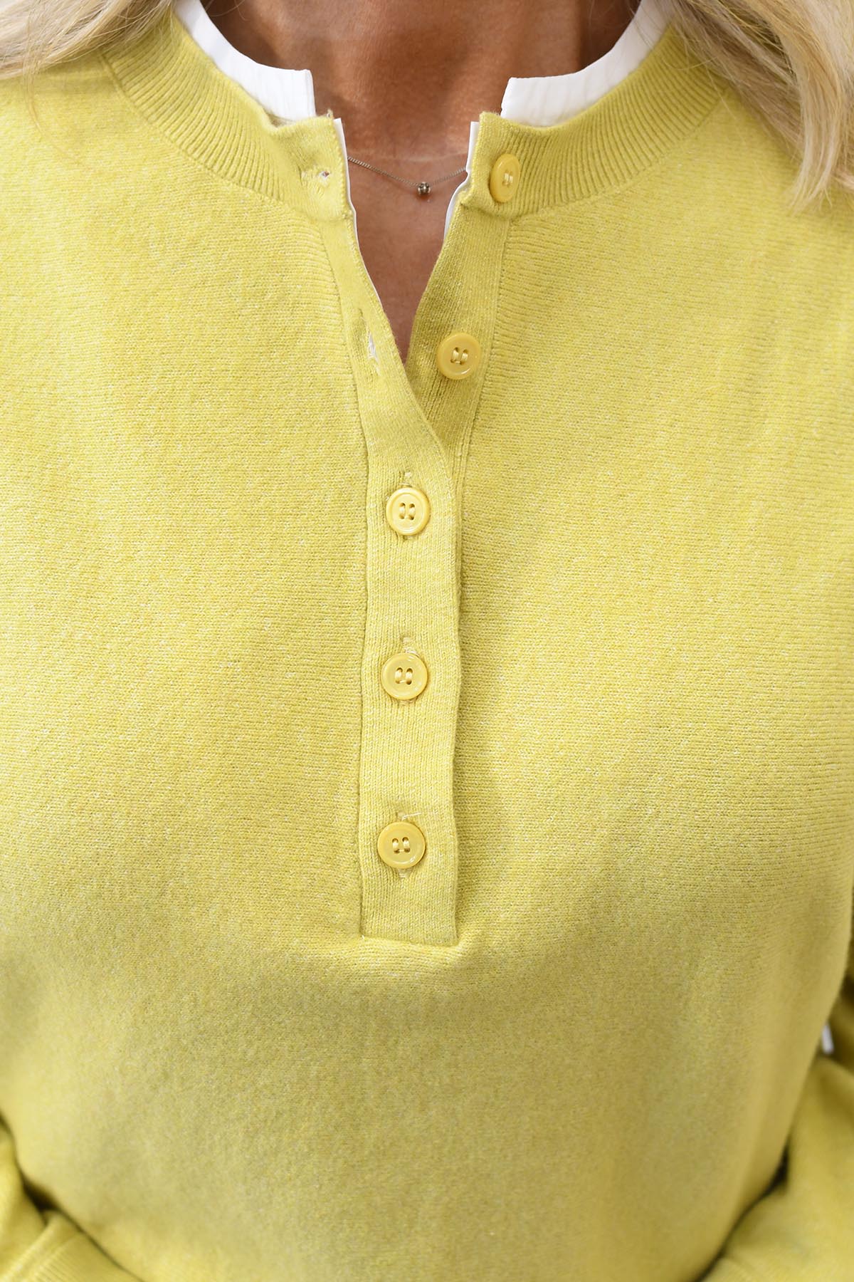 YAYA - Sweater With Inserted Blouse Collar Button Detail - Light Mustard - 01-00546-601