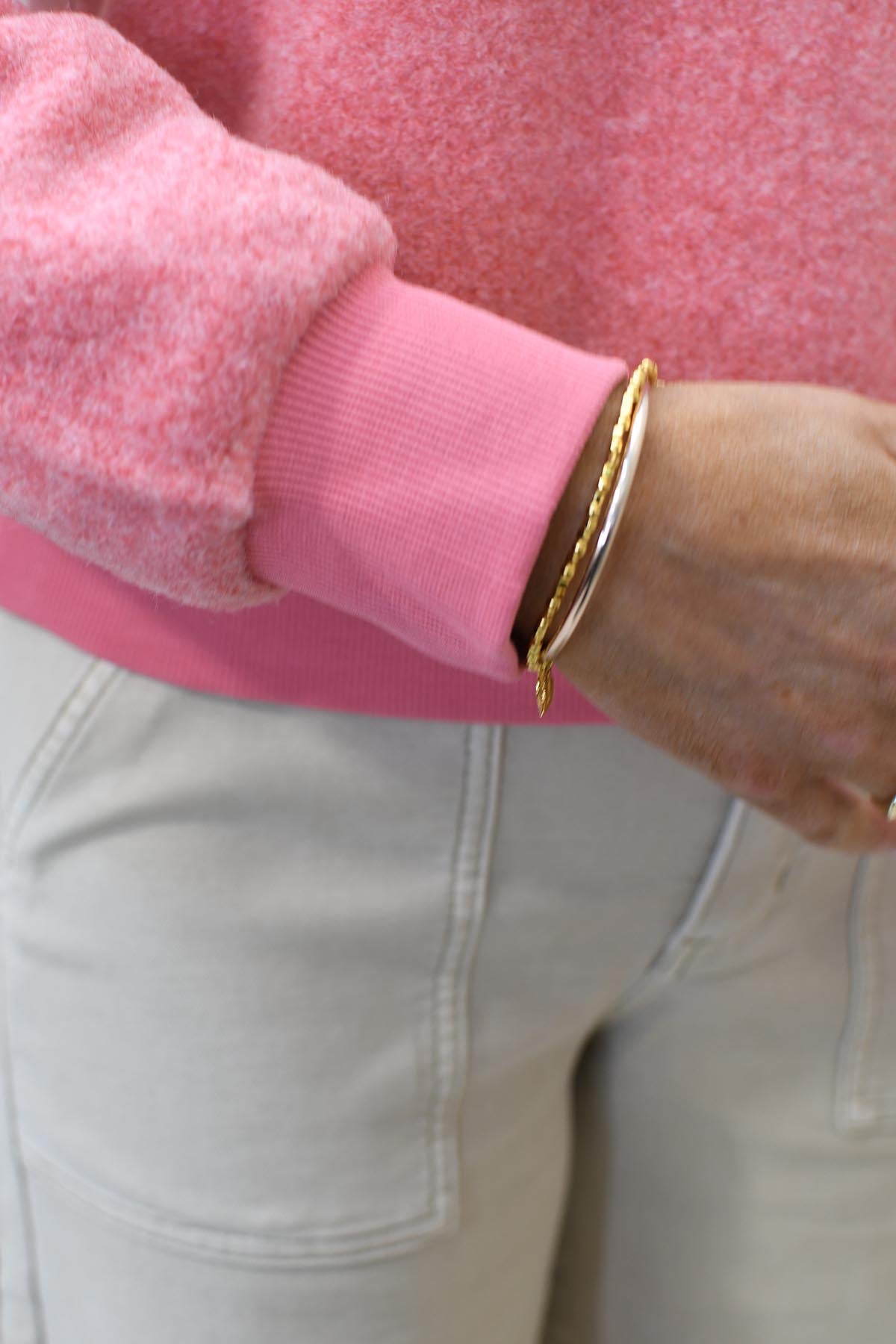 YAYA - Teddy Sweater With Ribbed Trims - Rose Red Melange - 01-109104-601