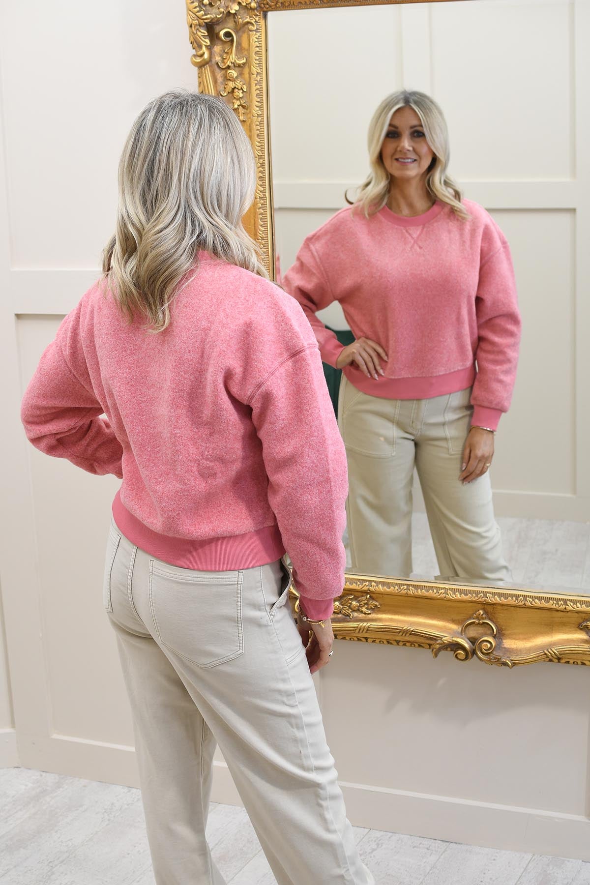 Cosy up in effortless style with this YAYA teddy sweater, designed for ultimate comfort with a chic everyday finish. Crafted from 100% polyester, it features a super-soft teddy texture that feels warm and plush while remaining lightweight enough for easy layering. The ribbed trims add structure and shape, giving the sweater a polished look that balances relaxed comfort with modern style. Finished in a beautiful rose red melange shade, it’s the perfect piece to brighten up winter wardrobes. Pair with jeans, leggings, or tailored trousers for an elevated casual look.