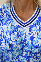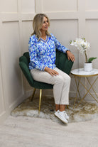 Elevate everyday style with this multi-tonal blue abstract print top, designed for effortless casual dressing. Crafted from a soft and breathable 70% viscose, 30% polyester blend, it offers lightweight comfort with lasting durability and easy care. The eye-catching abstract pattern brings modern character, while the sporty cuff detail adds a contemporary, athleisure-inspired edge. The relaxed fit allows freedom of movement, making it ideal for all-day wear while maintaining a flattering silhouette. Perfect for pairing with jeans or tailored trousers, this versatile top transitions seamlessly from daytime errands to relaxed social outings. A must-have women’s casual abstract print top that combines comfort, style, and everyday versatility.