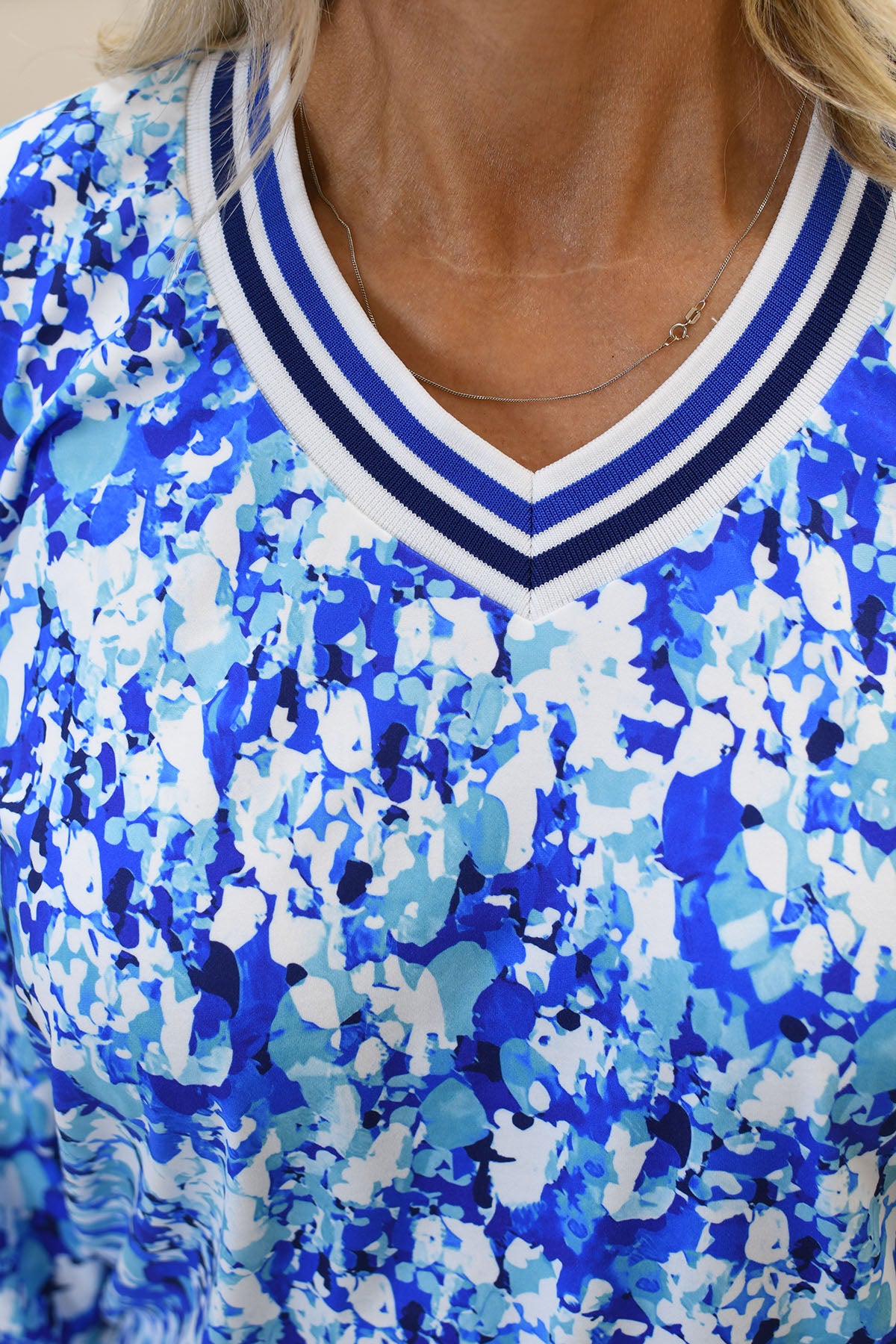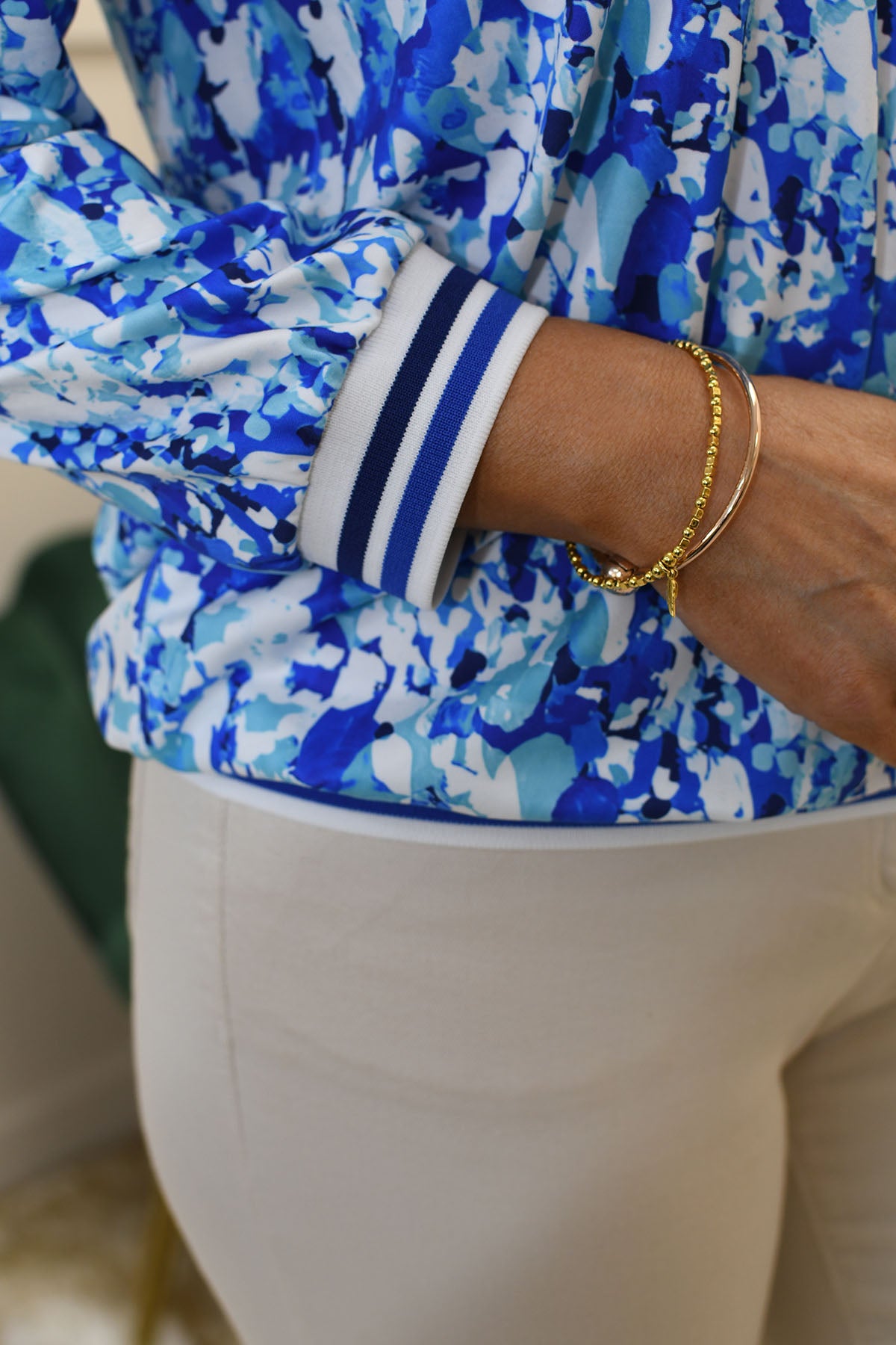 YEW - Abstract Print Top With Sports Cuff - Multi-Tonal Blue - 3825 Erica