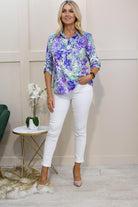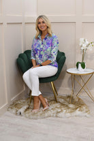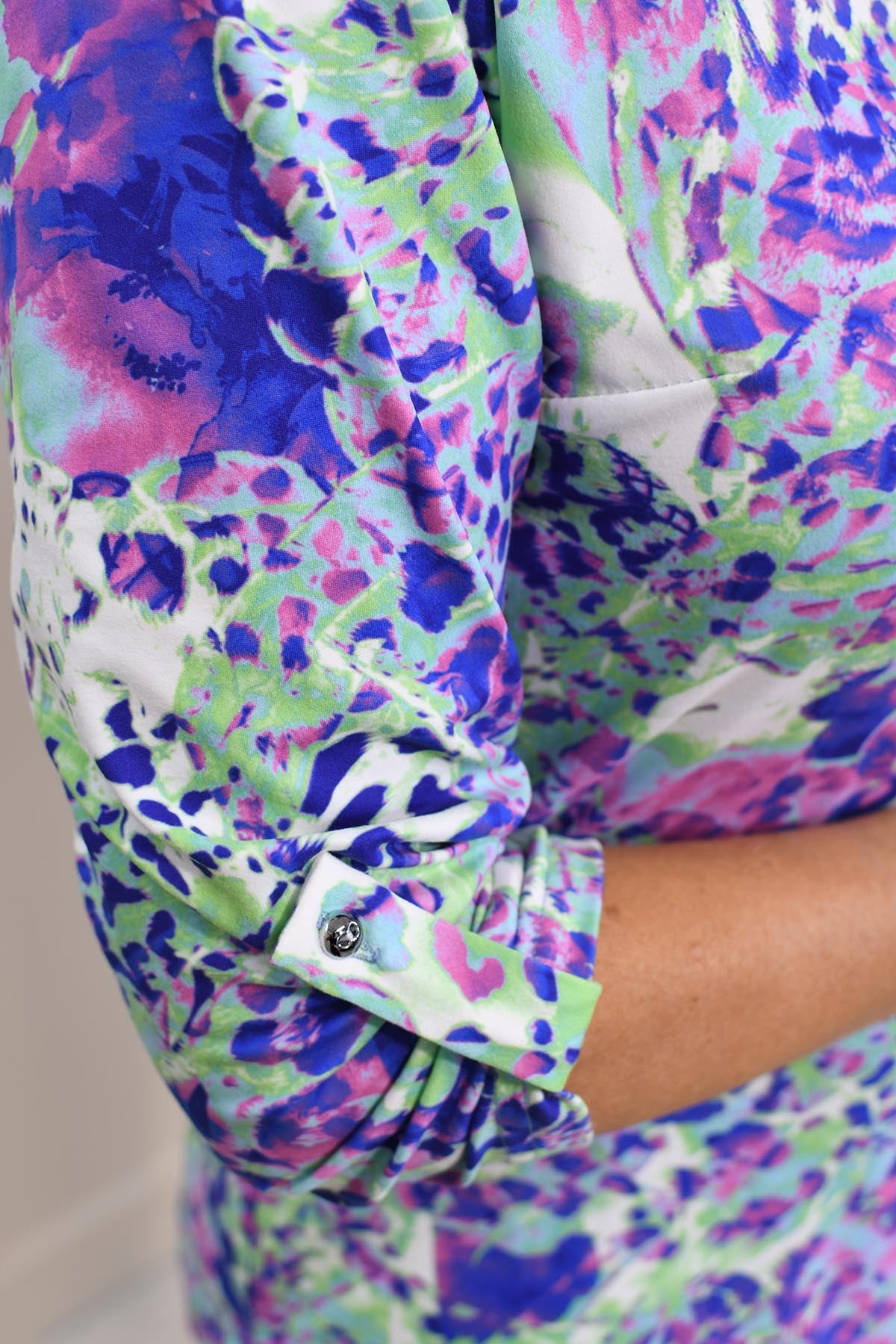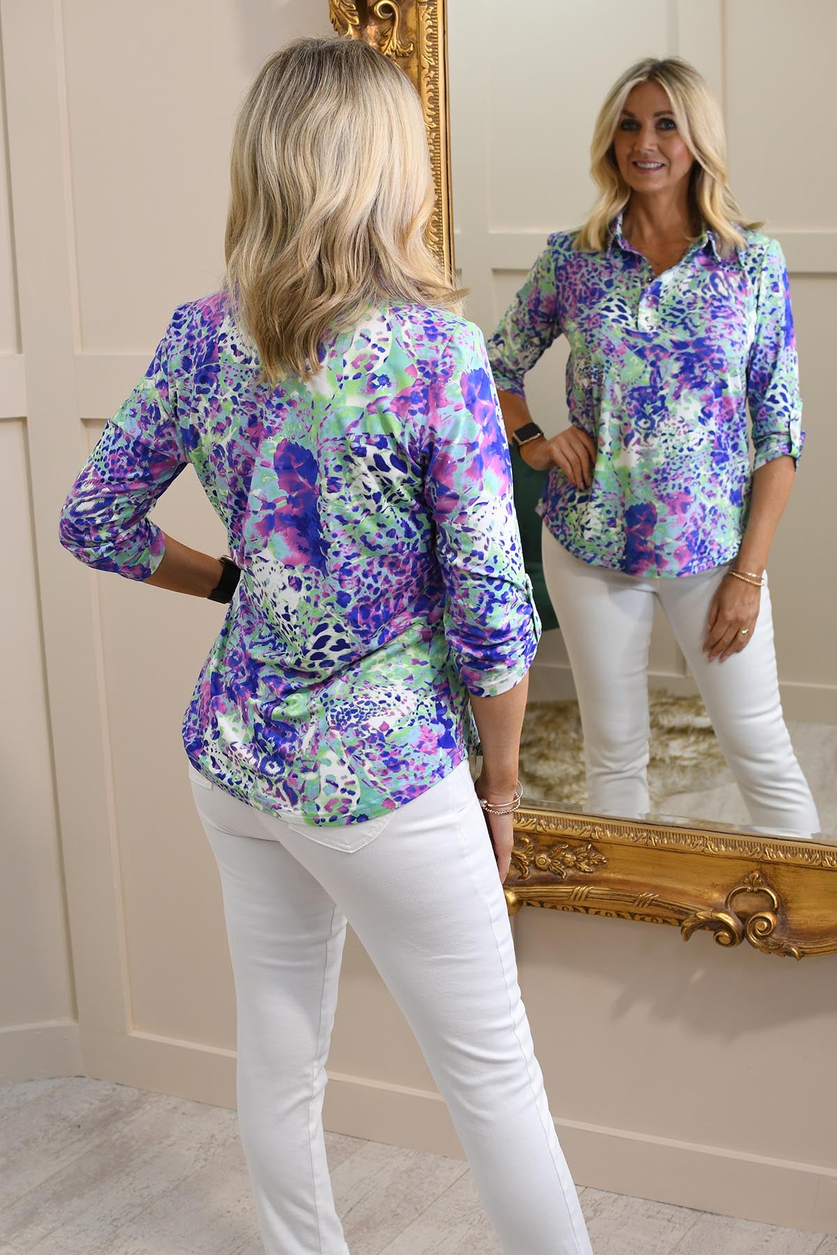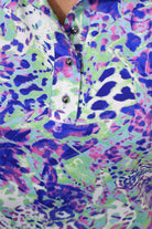 YEW Blue, Green & Lilac Abstract Print 1/4 Button Top- 3743B Millie