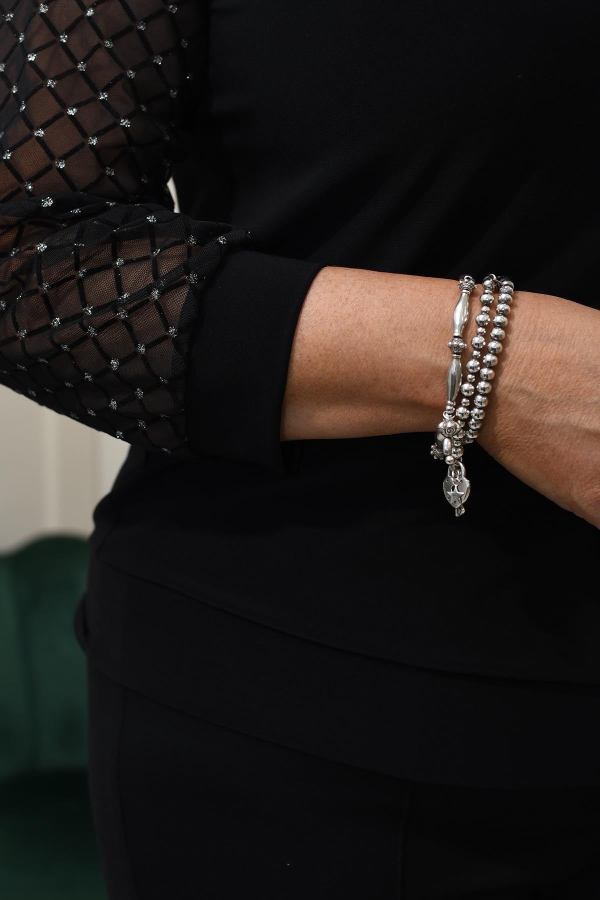 YEW Cowl Neck Top With Sheer Sparkle Sleeve -Black 2647 Rihanna