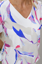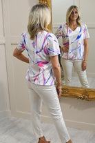 YEW Nude, Pink & Blue V Neck Short Sleeve Top- 4153 Delilah