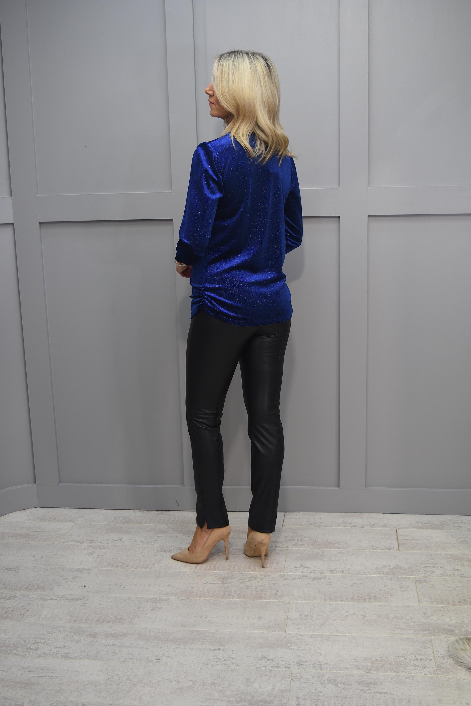 YEW Royal Blue Sparkle Top With Ruched Neck Line - 3986 Ayla