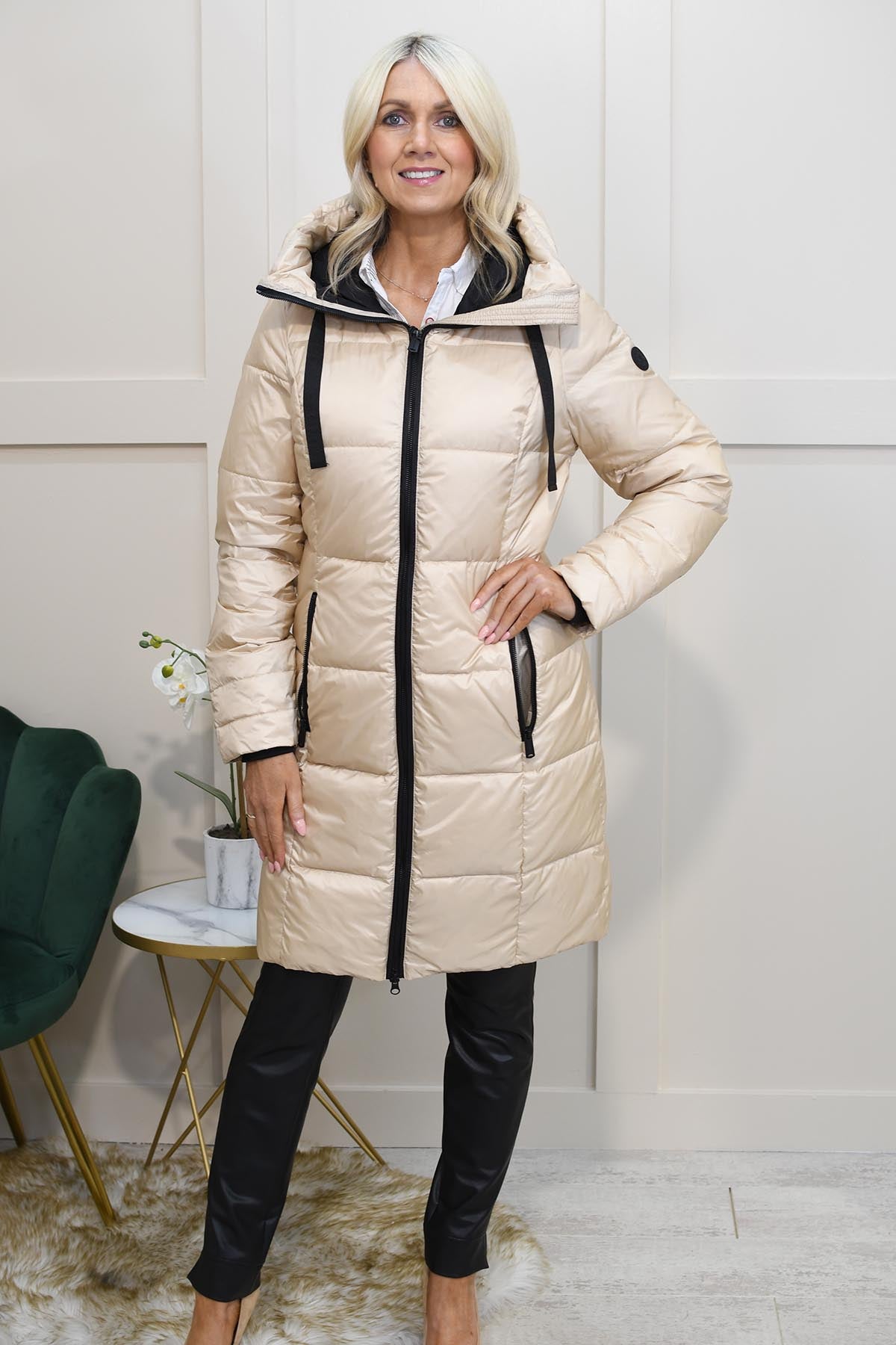 Embrace cosy elegance with the Normann Oatmeal Luster Padded Coat With Drawstring, a refined outerwear piece that blends luxurious comfort with modern design. This padded coat, in a sophisticated oatmeal hue with a subtle luster finish, offers a polished yet relaxed look perfect for any winter wardrobe.