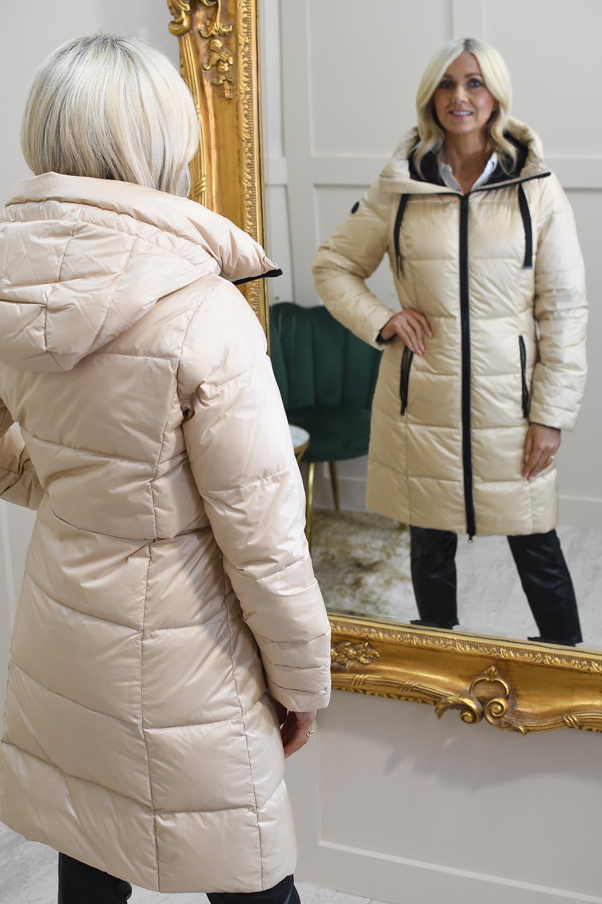 Crafted from high-quality materials, this coat features a padded design that provides exceptional warmth without compromising on style. The soft, lustrous finish adds a touch of sophistication, making it a versatile choice for both casual and more formal occasions.