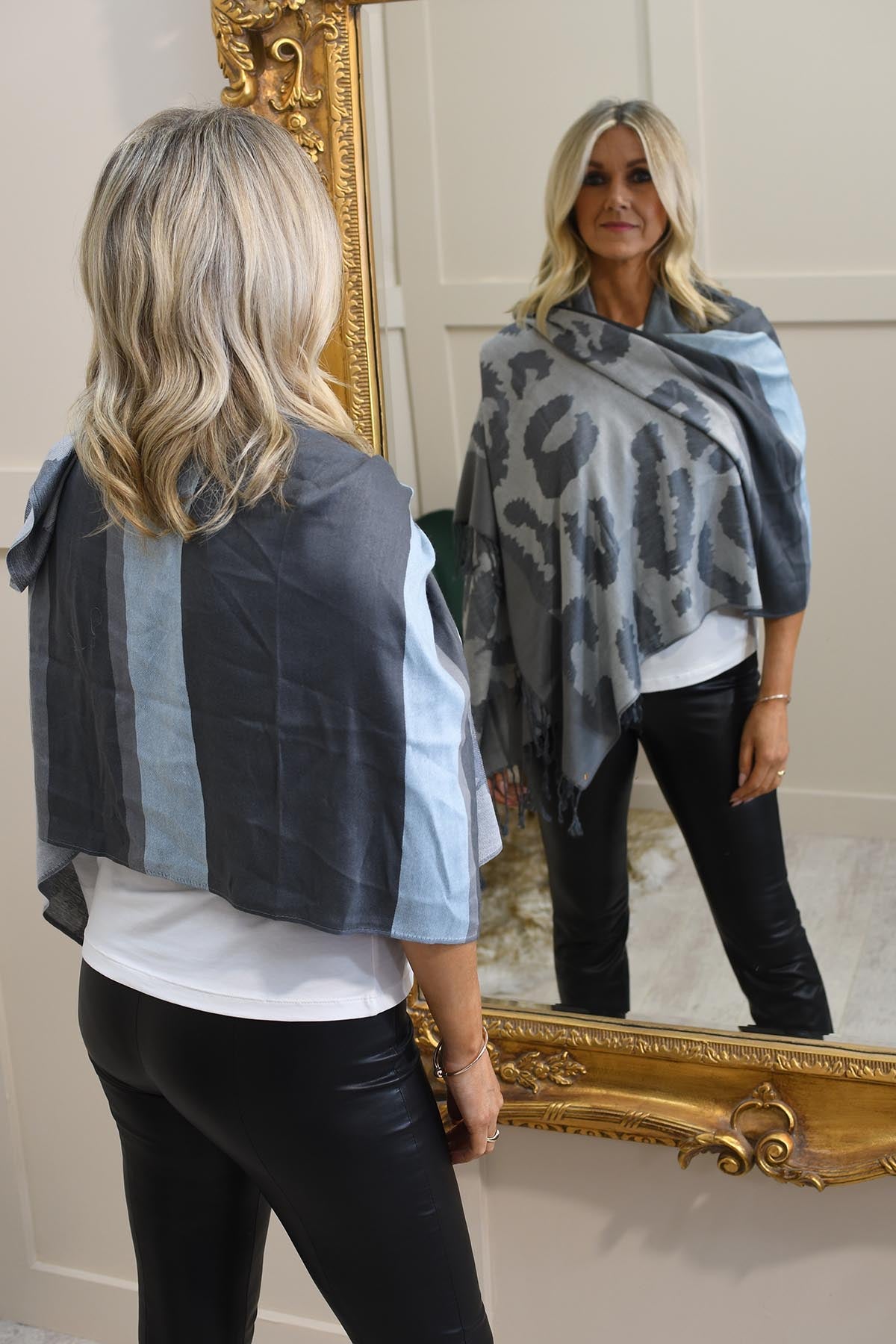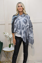 Olsen Animal Print Tassel Scarf- Grey & Teal 18001988