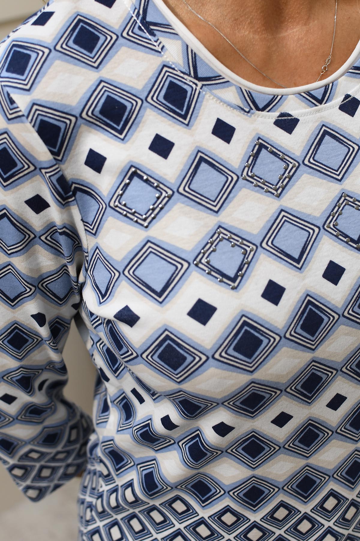 Olsen Navy & Beige Diamond Print Top With Stud Detail-111 04982