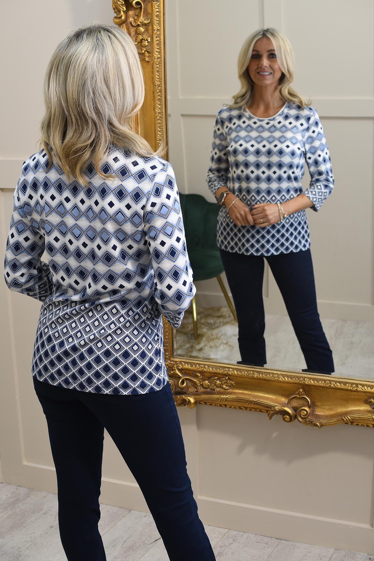 Olsen Navy & Beige Diamond Print Top With Stud Detail Additional Information
