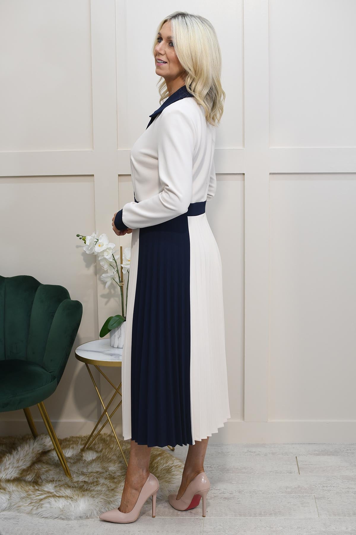 Arggido Cream & Navy Pleated Shirt Dress - 48025