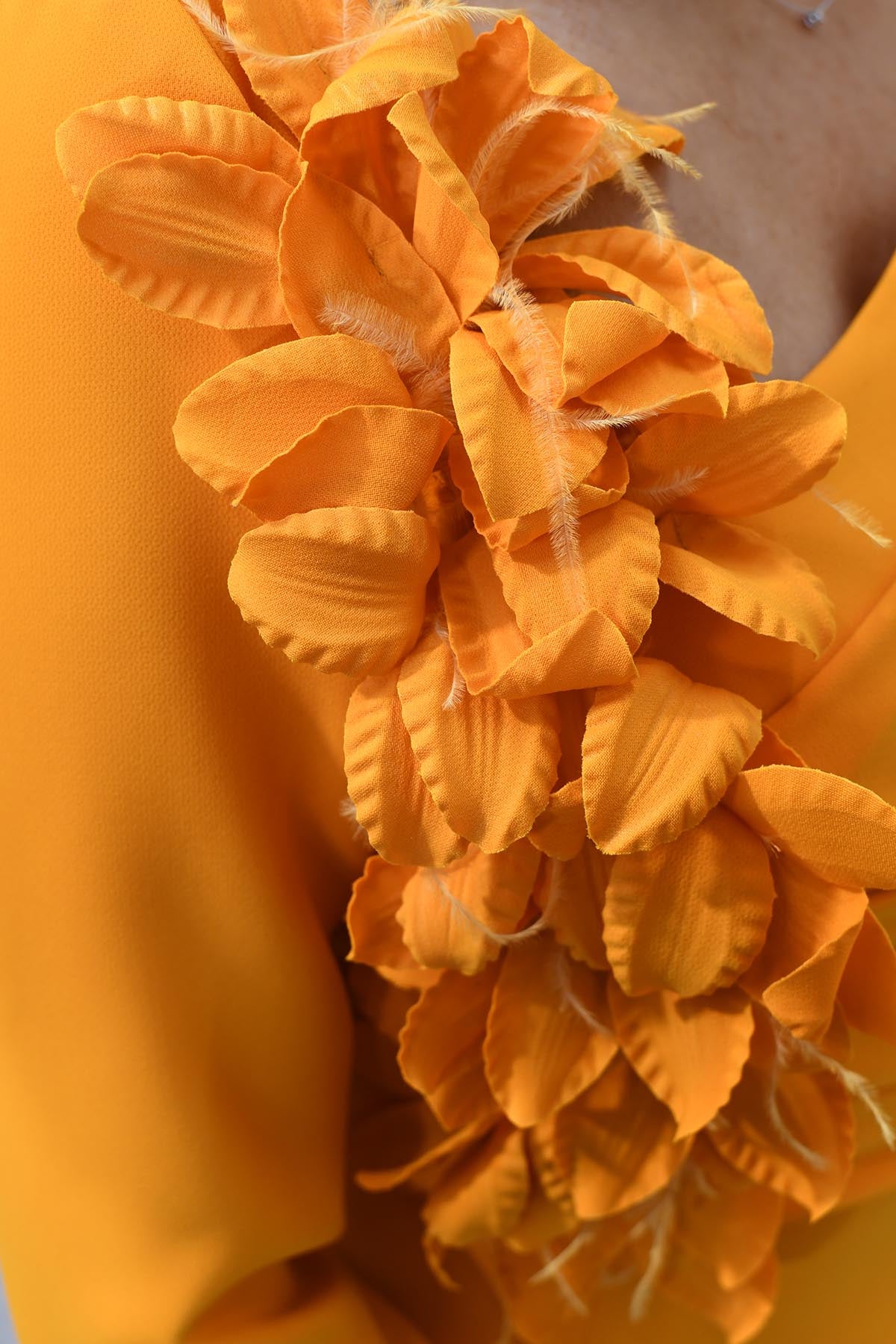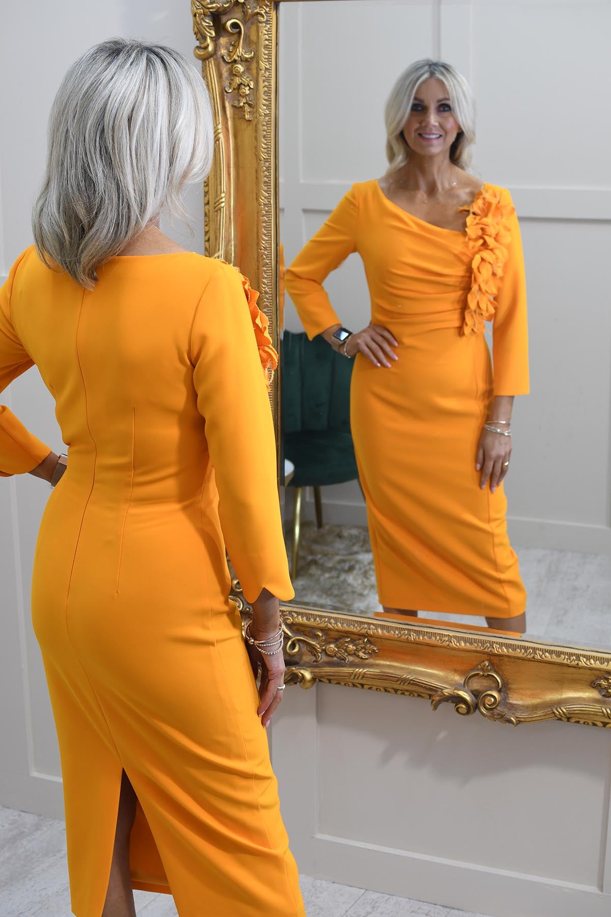 Carla Ruiz Orange Dress With Ruched Floral Detail- 51510