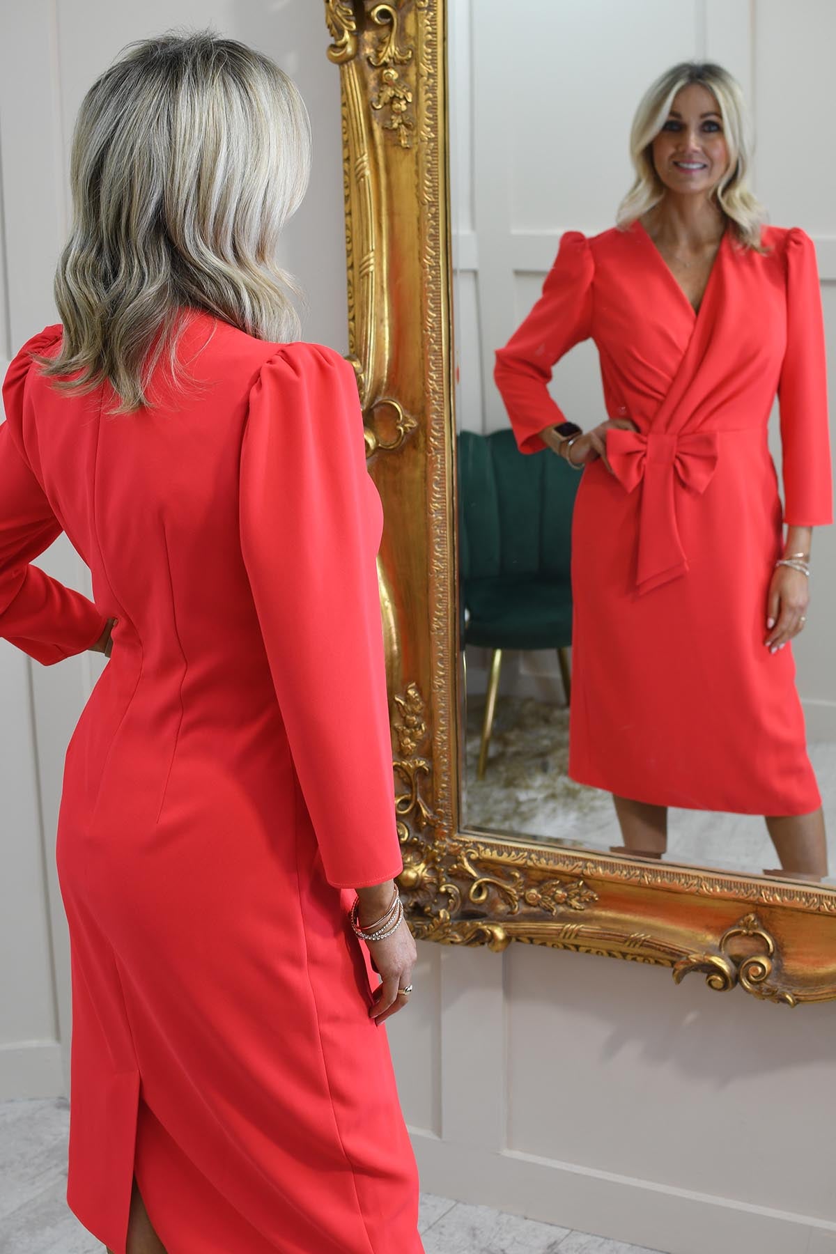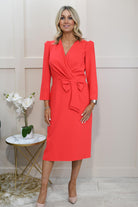 Brighten up your wardrobe with the Coco Doll Vivid Coral V Neck Dress With Bow Waist, a stunning piece designed to make a statement. This vibrant coral dress features a flattering V-neckline that enhances your silhouette, while the elegantly cinched bow waist adds a touch of feminine charm. The flowing skirt drapes beautifully, creating a graceful and sophisticated look perfect for special occasions, summer events, or evenings out. Effortlessly chic and eye-catching, pair it with nude heels and delicate accessories for a polished, head-turning ensemble that radiates confidence and style.