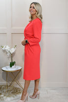 Coco Doll Vivid Coral V Neck Dress Description