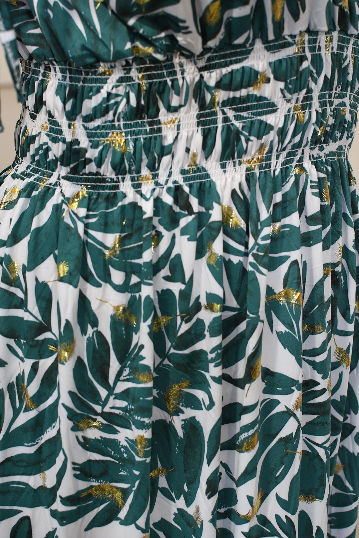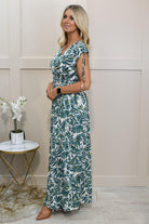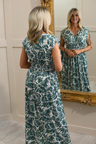 Elena Z Emerald Green & Gold Palm Print Magic Fit Maxi Dress-023-27