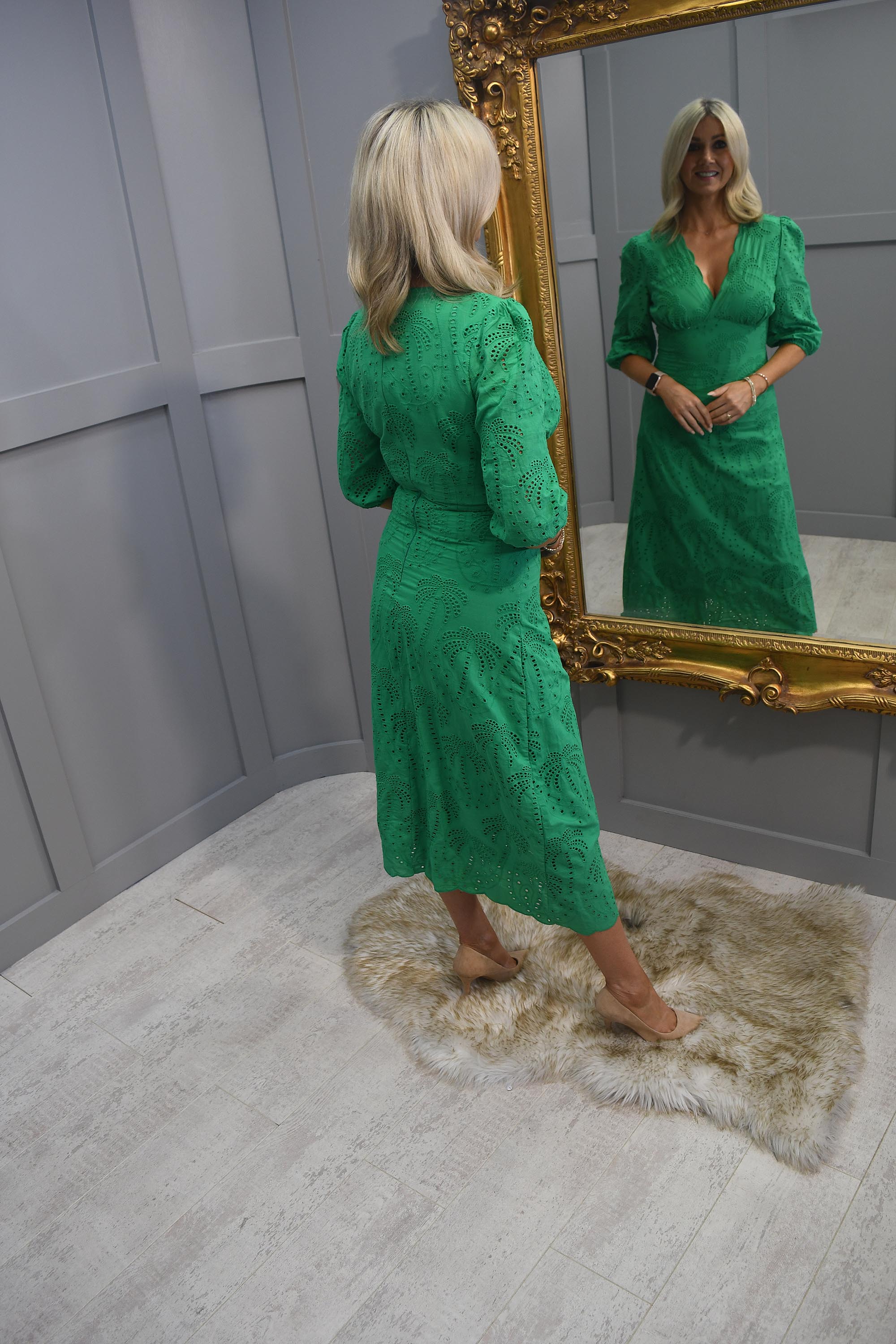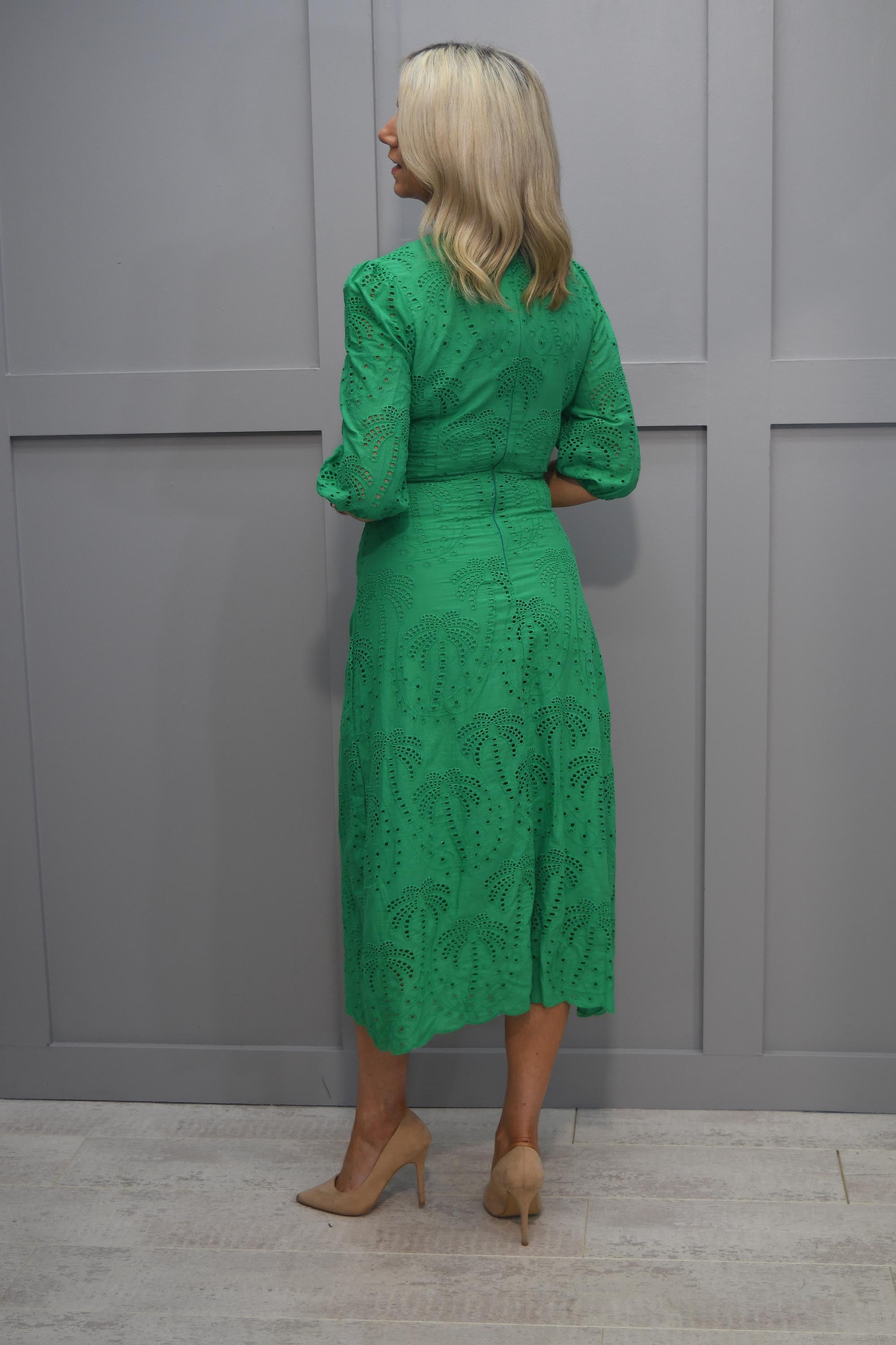 Girl In Mind Emerald Green Palm Broderie Dress Description