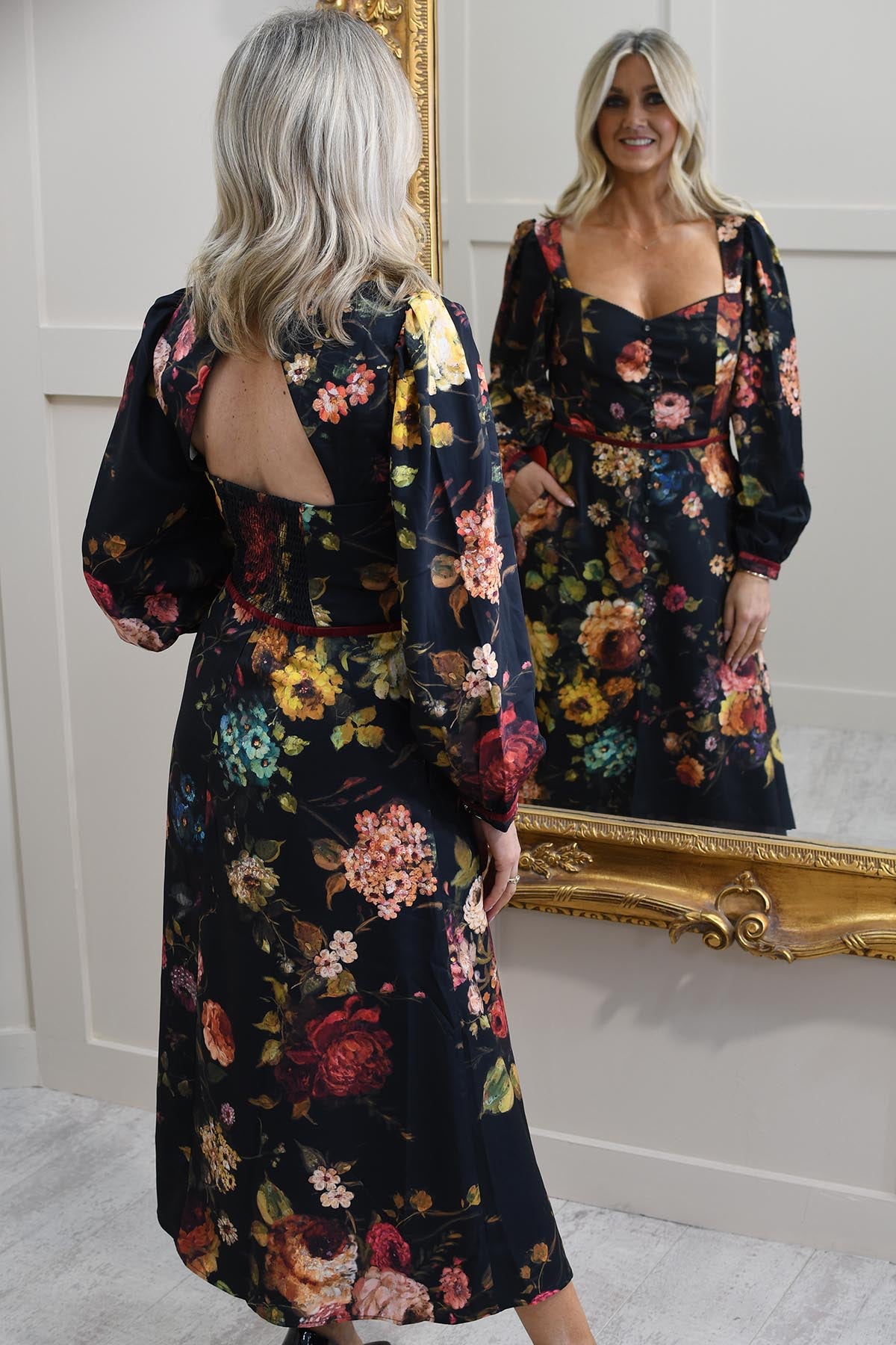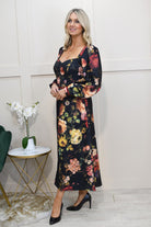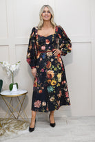 Hope & Ivy Blouson Sleeve Midi Dress with Sweetheart Neckline - Black - Adrienne