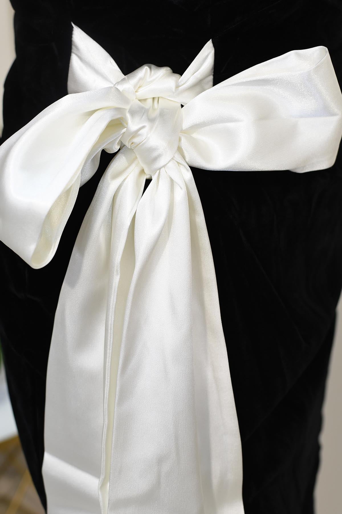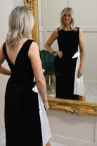 Hope & Ivy Plunge Back Thigh Split Midi Dress with Contrast Satin Bow - Noelle
