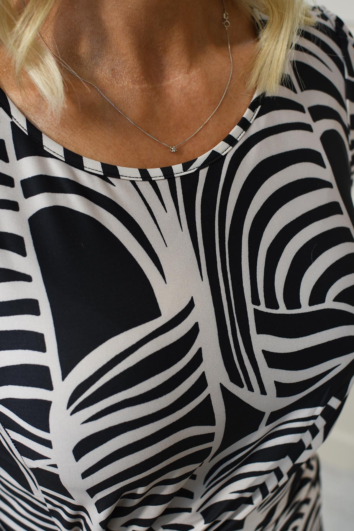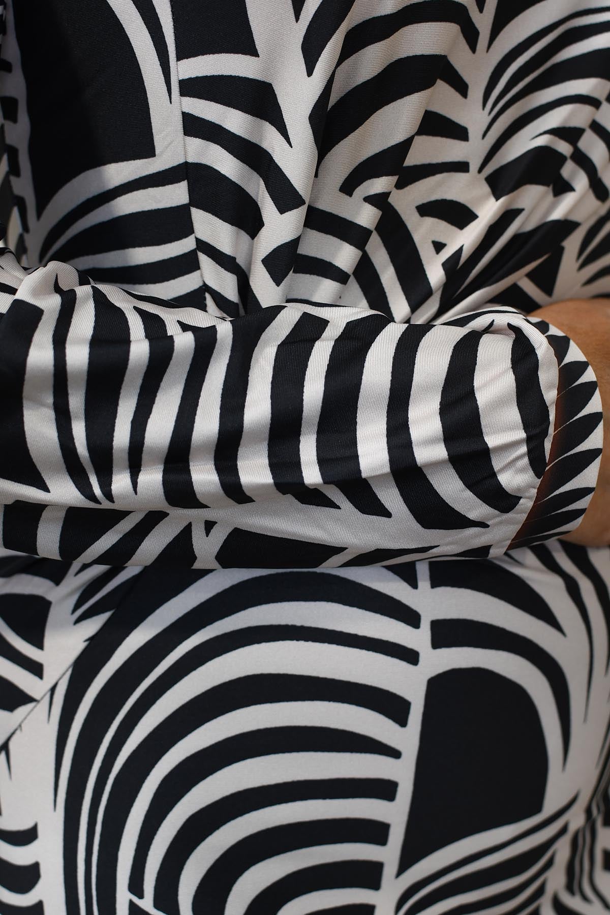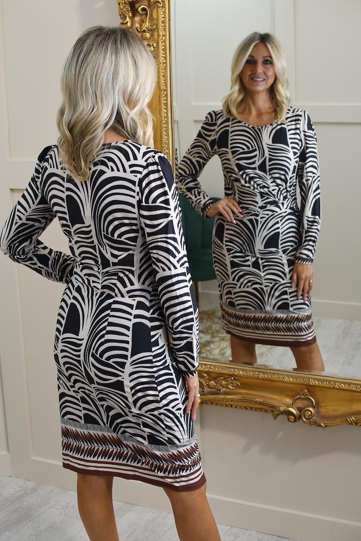 K.Design-Crew Neck Midi Dress With Design- Black & Beige-B320 P056