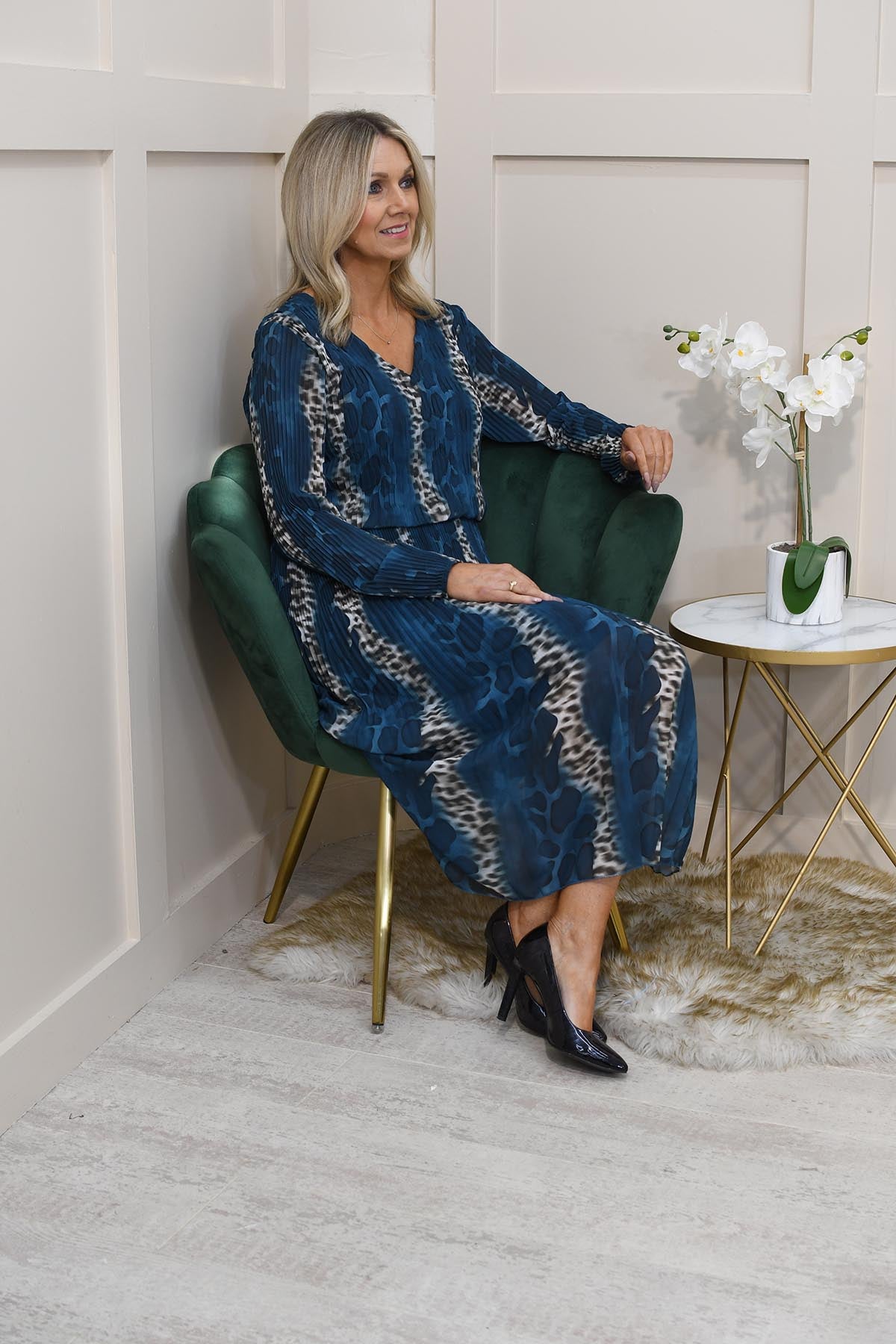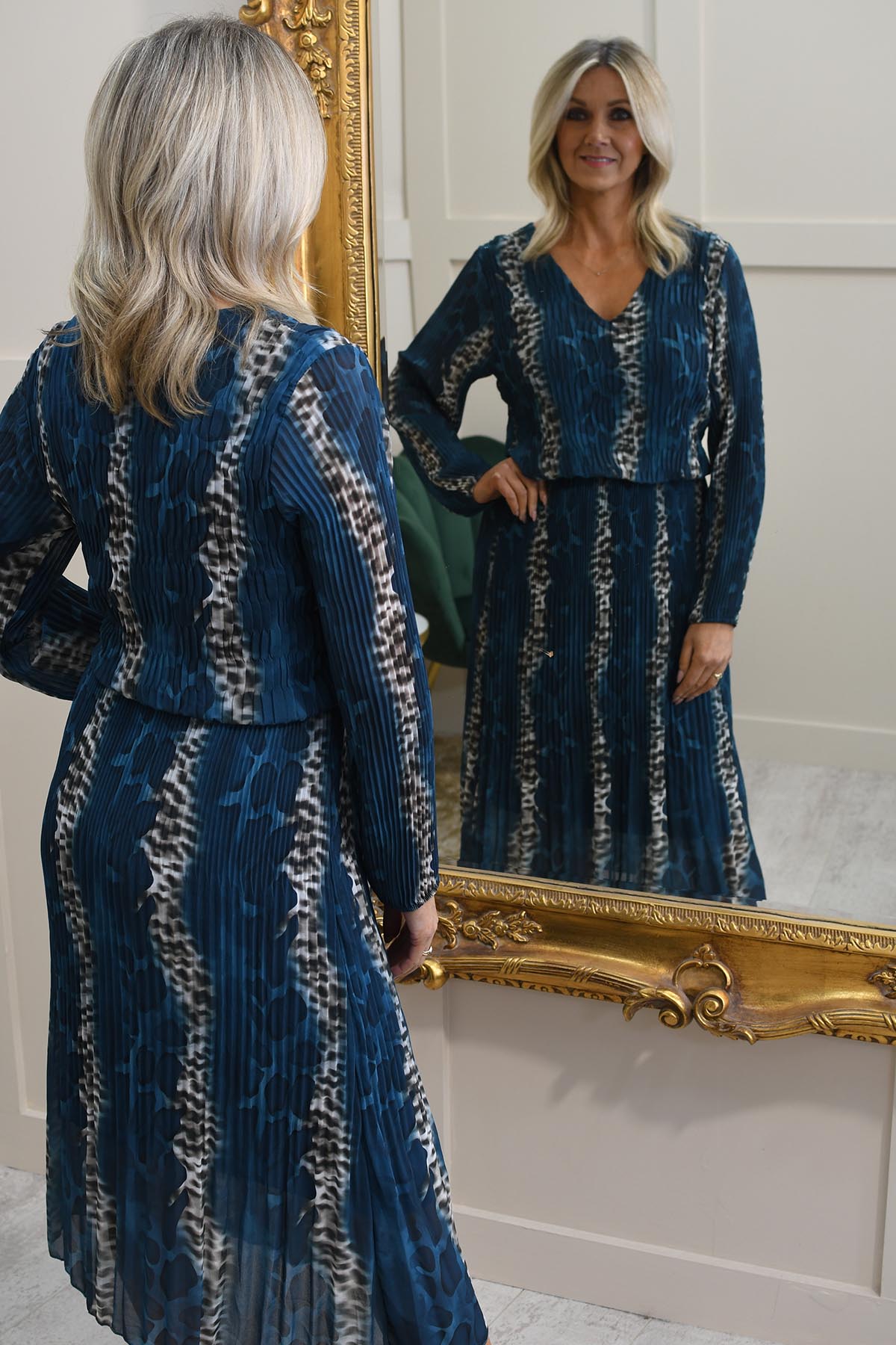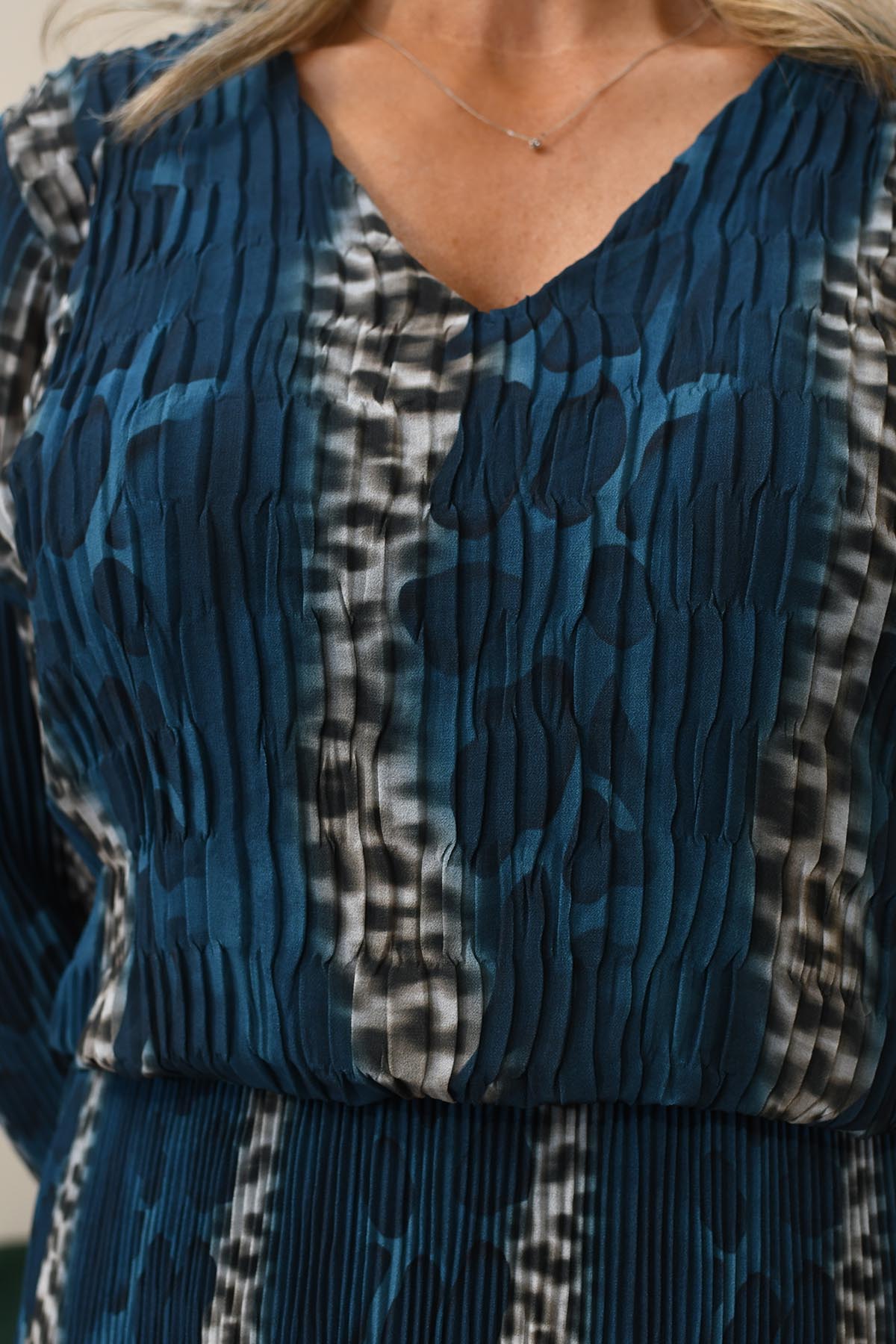 Bring timeless elegance to your wardrobe with the Kyla Plissé Dress in a winter teal. Crafted from 95% viscose and 5% elastane, it offers breathable softness with gentle stretch for comfort and a flattering fit. The plissé texture adds depth and movement, creating a sophisticated silhouette that flows beautifully with every step. Effortlessly versatile, this dress can be styled for both daytime chic and evening elegance—perfect with boots and a jacket for casual wear or heels and jewellery for special occasions. A wardrobe must-have for women who love refined styles with a modern, textured finish.