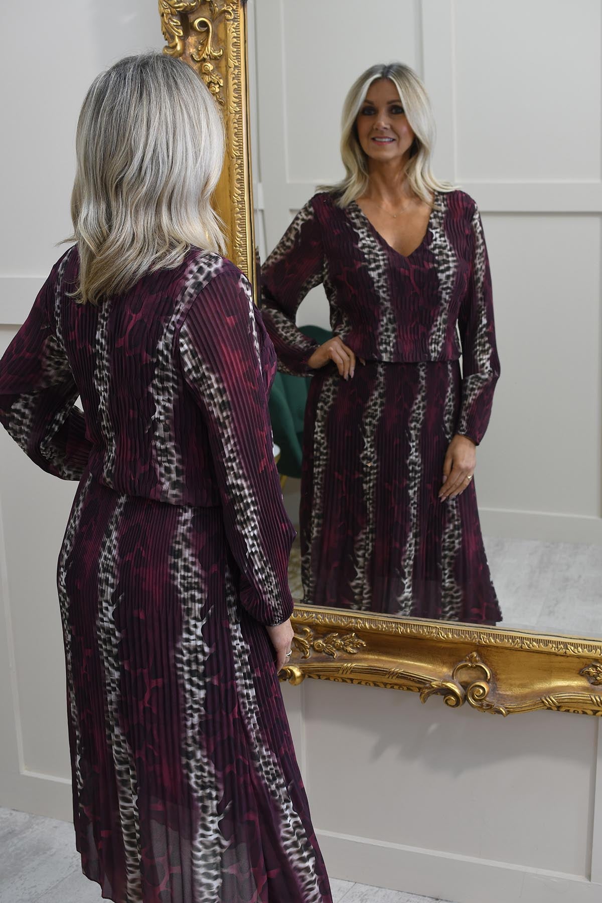 Bring timeless elegance to your wardrobe with the Kyla Plissé Dress in a versatile wine. Crafted from 95% viscose and 5% elastane, it offers breathable softness with gentle stretch for comfort and a flattering fit. The plissé texture adds depth and movement, creating a sophisticated silhouette that flows beautifully with every step. Effortlessly versatile, this dress can be styled for both daytime chic and evening elegance—perfect with boots and a jacket for casual wear or heels and jewellery for special occasions. A wardrobe must-have for women who love refined styles with a modern, textured finish.