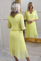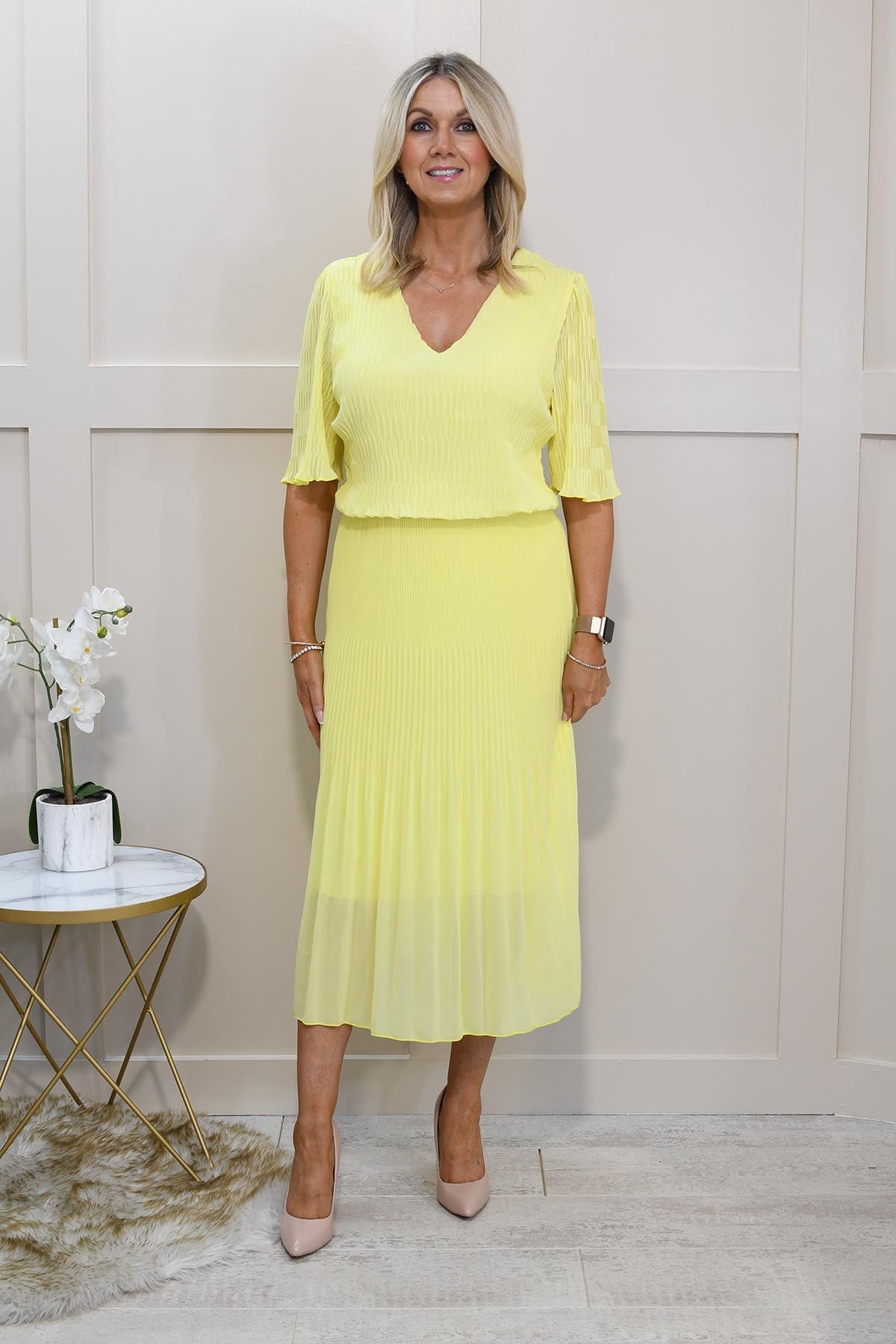 Introducing the Kyla Lemon Plissé Dress, a harmonious blend of comfort and contemporary style. Crafted from lightweight plissé fabric, this dress features a beautiful bright yellow colour. The pleated texture offers graceful movement, while the relaxed silhouette ensures all-day comfort. Ideal for both casual outings and special occasions, this versatile piece pairs effortlessly with your favourite accessories. Key features include a flattering fit, breathable fabric, and an eye-catching design. Perfect for those seeking a stylish and comfortable addition to their wardrobe.