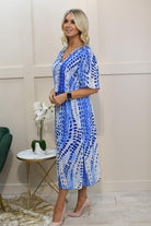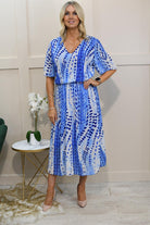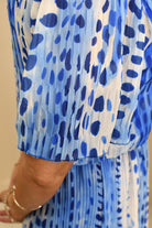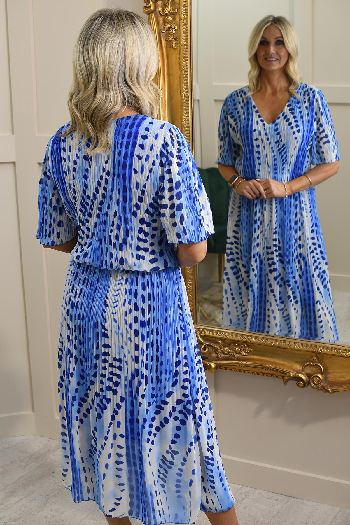 Kyla Multi-Tonal Blue Spot Print Plisse Dress- 6747