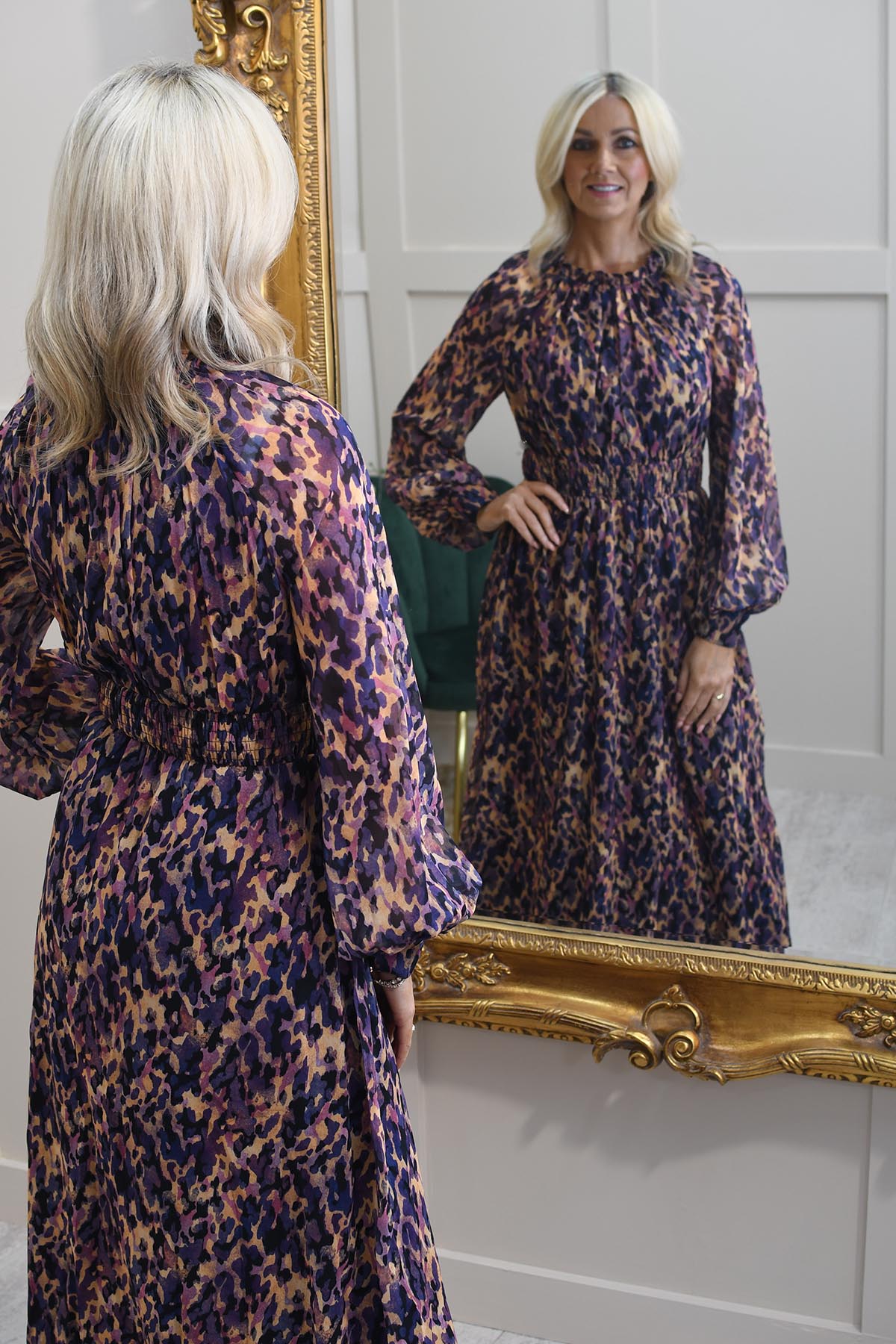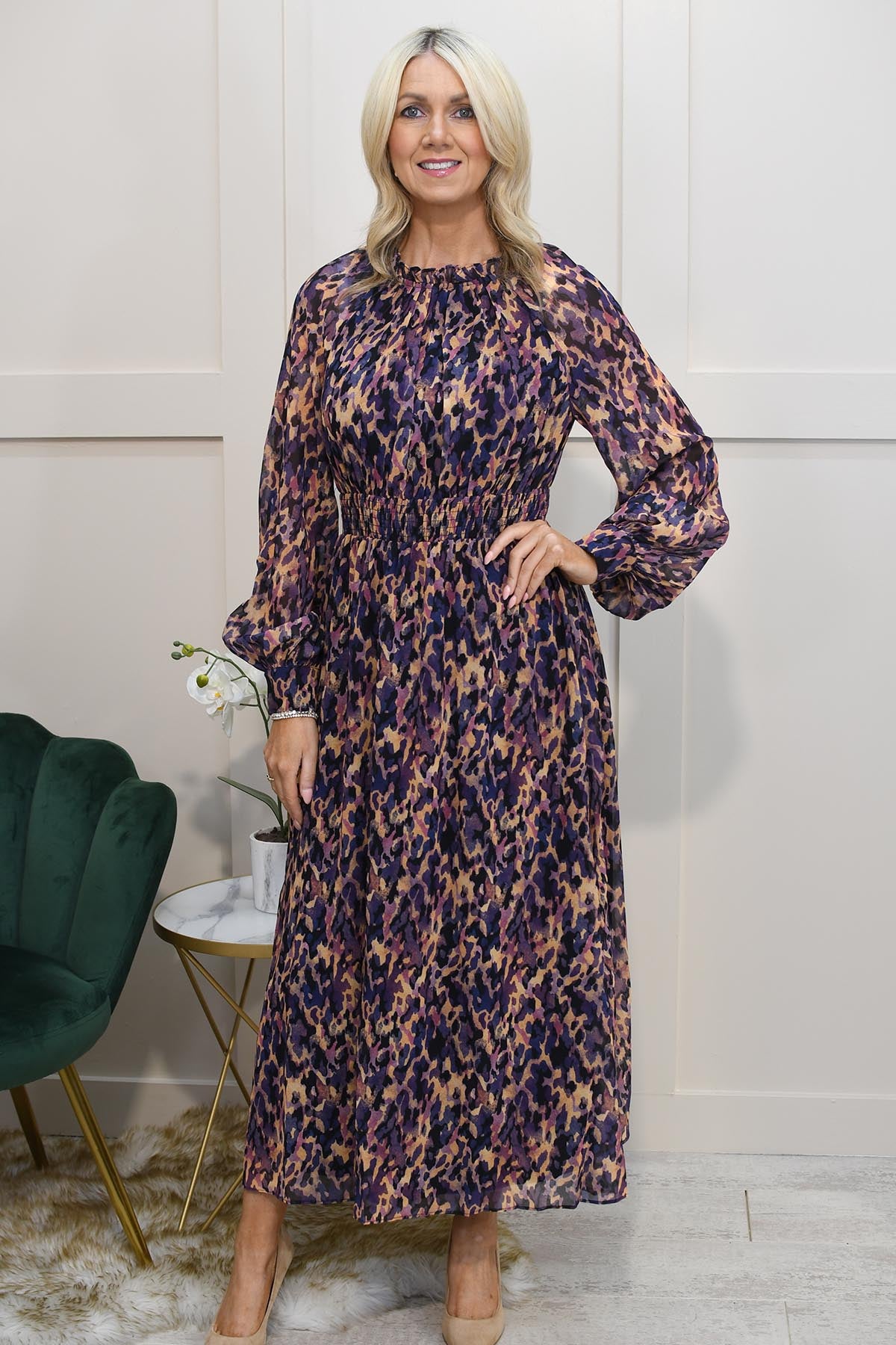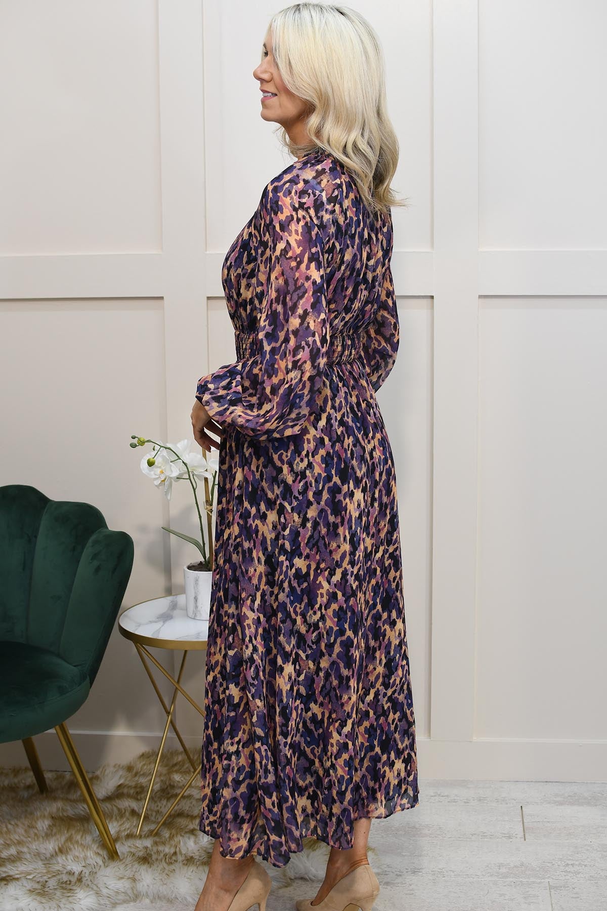 Little Mistress Purple & Orange Leopard Print Midaxi Dress With Elasticated Waist-A24VW0102MU