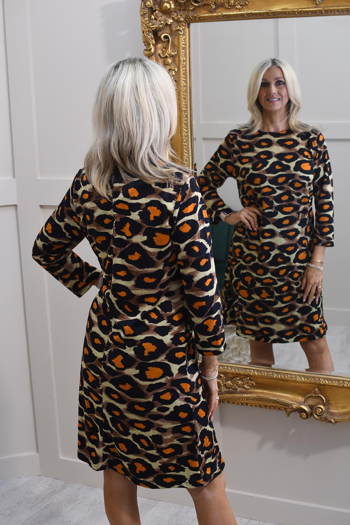 Pomodoro Orange Animal Print Dress With Faux Pocket Detail - 12456