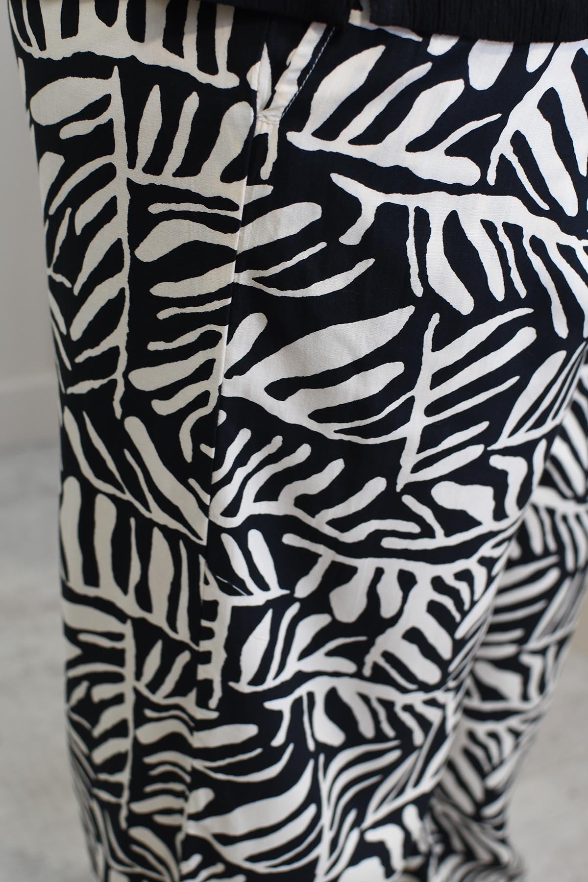 Pomodoro Black & Beige Leaf Print Trousers-72508