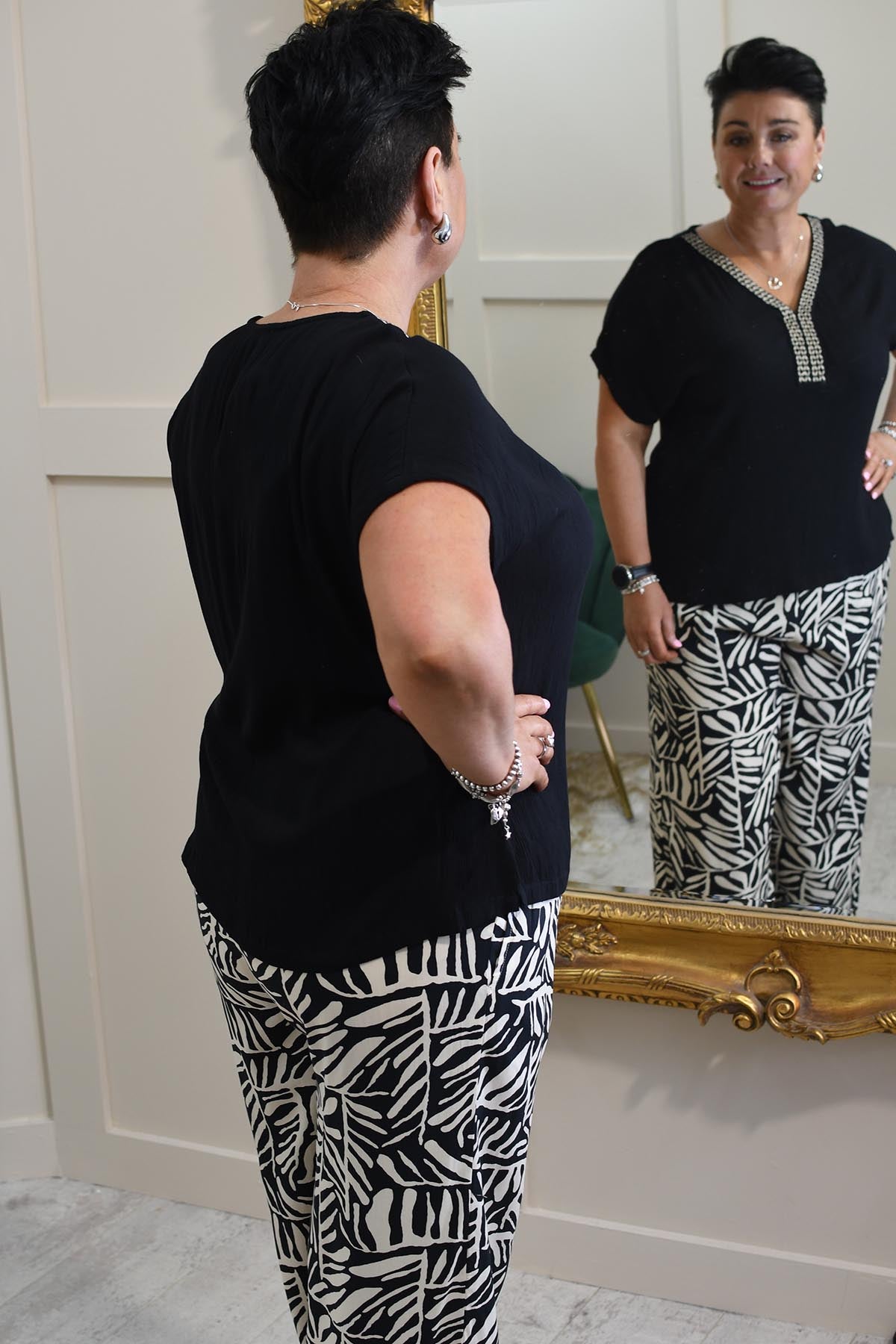 Elevate your summer wardrobe with the Pomodoro Black & Beige Leaf Print Trousers a perfect blend of effortless style and breathable comfort. Made from 100% lightweight viscose, these trousers fit beautifully, offering a soft and airy feel, ideal for warm-weather days. The sophisticated black and beige leaf print creates a timeless look, while the flattering silhouette and straight leg design ensure all-day ease. Whether styled with sandals for a relaxed daytime look or paired with heels for an elegant evening outfit, this versatile trousers is a must-have for summer getaways and beyond.