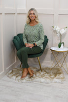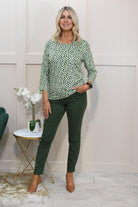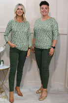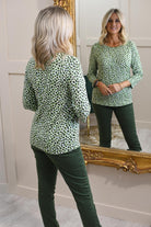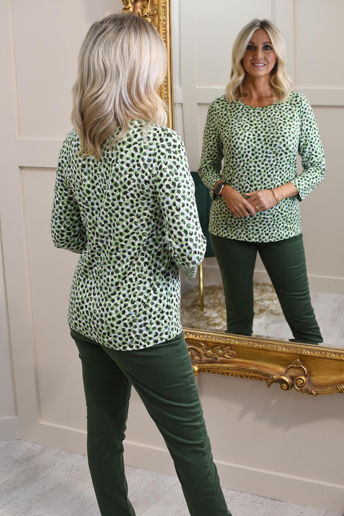 Rabe Apple Green, Khaki & Blue Abstract Print Top-55-111353